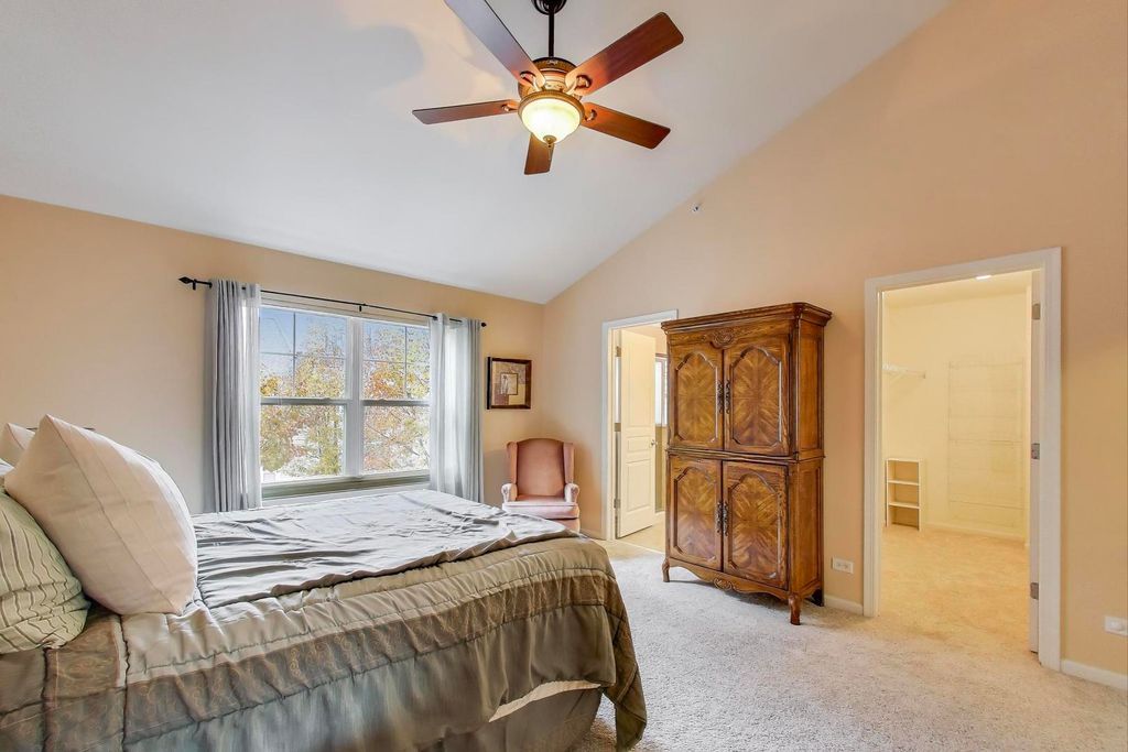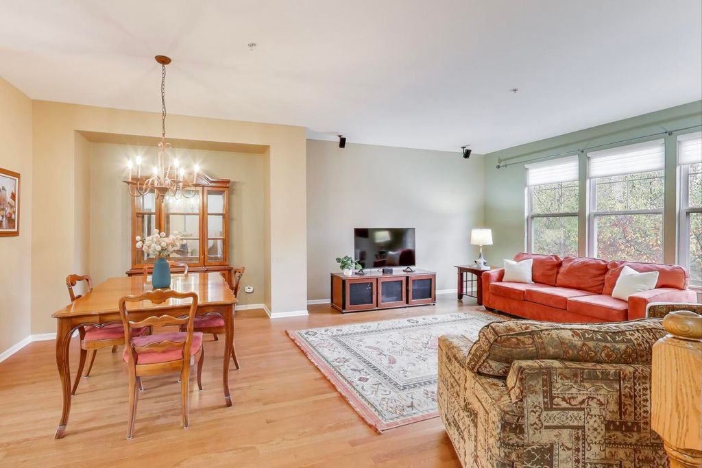Extremely well-maintained and move-in ready, this spacious 3-bedroom townhome offers the perfect blend of comfort, style, and convenience. The main level features hardwood floors, a bright and welcoming living room with three large windows, and a Bose surround sound system. The extra-large kitchen stands out with new quartz countertops, a new sink, a water-filtration system, and refreshed cabinetry. An oversized island and generous space for a dining table make this the ideal setting for cooking, hosting, and everyday living. Just off the kitchen, enjoy an inviting balcony with newly installed modular outdoor flooring-perfect for grilling, relaxing, or your morning coffee. Upstairs, both bedrooms include walk-in closets and private ensuite bathrooms, offering exceptional comfort and privacy. The home also provides two additional half baths, ample storage throughout, and a large 2-car garage. Located in a highly sought-after, scenic subdivision, the property is surrounded by mature trees that create a peaceful, private atmosphere. A walking path directly behind the home enhances the serene, nature-filled setting. Truly a rare find! Beautifully maintained, generously sized, and set in an idyllic community. Don't miss this one!