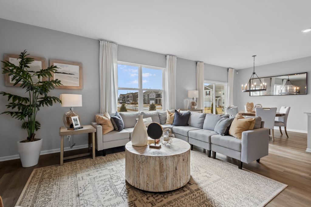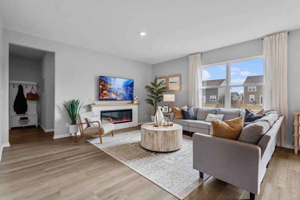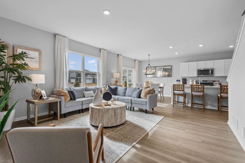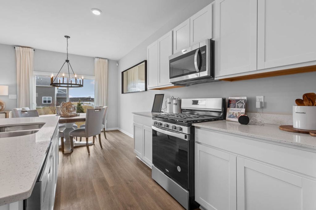Prepare to be wowed at 501 Autumn Moor Trail in Hampshire, Illinois. A beautiful new Henley floor plan in our Prairie Ridge community. This home will be ready for an early year move-in! This scenic home site includes a fully sodded yard. This open concept Henley plans offers 2,600 square feet of living space with 4 bedrooms, a loft, 2.5 bathrooms and a 1st floor flex room. Entertaining will be easy in this open-concept kitchen, dining and family room layout with a large island with overhang for stools. Additionally, the kitchen features a walk-in pantry, designer white soft close cabinetry, modern stainless-steel appliances, quartz countertops, and easy-to-maintain luxury vinyl plank flooring. For everyday ease, enjoy coming home to a large mud room right off the garage which also leads to a huge 1st floor walk-in storage closet. Plus, the 1st floor flex room offers a flexible space for an office, playroom, or create a formal living or dining room. As you head upstairs, you'll first notice even more space waiting in the 2nd-floor loft, offering unlimited potential like a movie room, 2nd family room, playroom or study/work area. Escape to your private getaway in your large primary bedroom and ensuite bathroom with dual sinks, quartz top vanity, and walk-in shower. Convenient 2nd floor walk-in laundry room, 3 additional bedrooms with a full second bath and linen closet complete the second floor, Need more space? This home also includes a huge, blanket wrapped insulated basement! All Chicago homes include our America's Smart Home Technology. Photos are of similar home, actual home may vary.