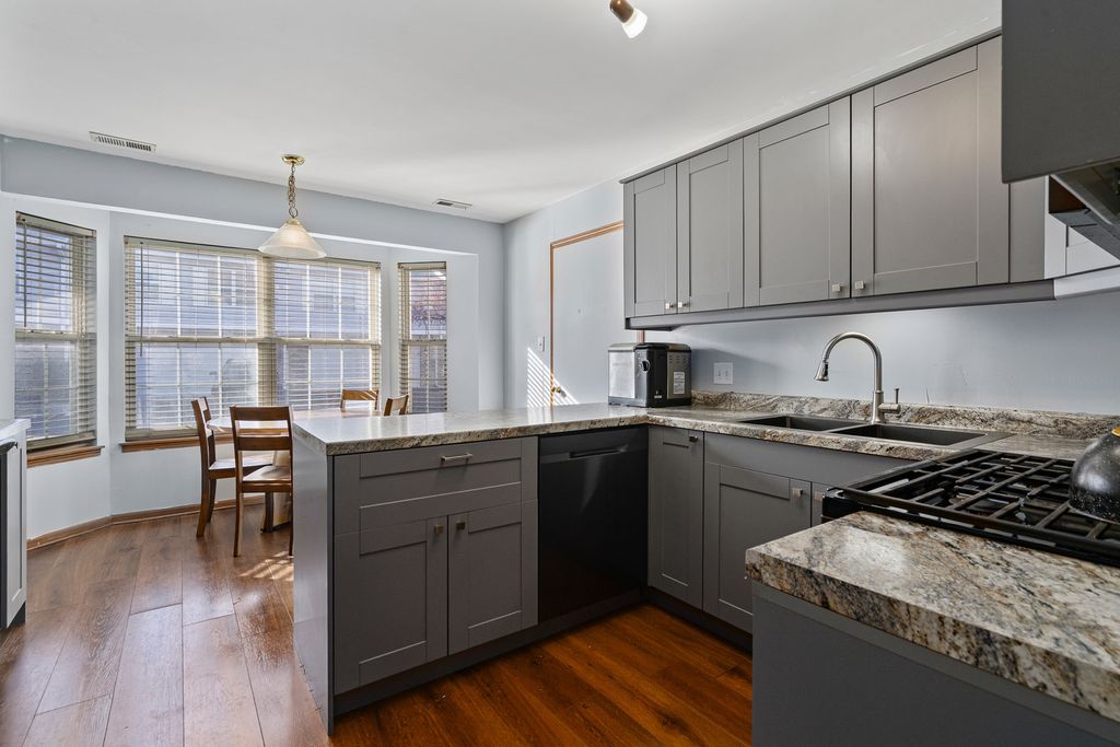 Welcome to this beautifully updated and spacious townhome offering modern elegance and a bright, open-concept floor plan in sought-after Cambridge at the Reserves. Step inside to discover a stunning updated kitchen featuring stylish gray cabinetry, all appliances, and luxury plank flooring that flows seamlessly throughout the main level. The dramatic vaulted living room is bathed in natural light and showcases a cozy gas-start fireplace, creating the perfect ambiance for relaxing or entertaining. A glass door opens to your private patio, ideal for morning coffee or evening gatherings. Upstairs, the impressive vaulted loft overlooks the living room and provides an inviting flex space for a home office, den, or reading nook. The convenient second-level laundry room with utility sink adds everyday ease. The luxurious master suite boasts a large walk-in closet and access to the updated shared bath featuring a raised gray vanity and a soothing soaker tub. The spacious second bedroom includes two closets, one of which is a generous walk-in. Additional highlights include an attached garage and a prime location close to downtown Plainfield, shops, dining, and easy expressway access. This home perfectly blends modern updates, thoughtful design, and a fantastic location-a true gem in Cambridge at the Reserves!