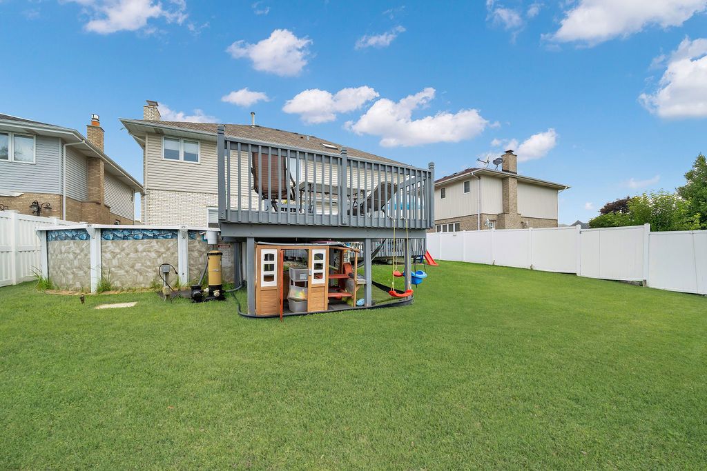 Welcome to this beautifully updated and spacious executive-style home. A former model that exudes quality and elegance throughout! This all-brick, two-story gem offers 5 generously sized bedrooms and 3.5 bathrooms, including a fully finished basement perfect for related living. Step inside to a dramatic two-story foyer and sun-drenched formal living room with a charming bay window. The formal dining room features beautiful crown molding and is ideal for hosting gatherings. Enjoy cooking in the gourmet kitchen, complete with newer stainless steel appliances, granite countertops, a custom glass backsplash, island, pantry, and built-in desk. The breakfast area leads to a large deck overlooking the fully fenced backyard with a pool-perfect for entertaining! The cozy family room includes a marble fireplace and a butler's pantry. Newly refinished hardwood floors run throughout the main level, along with a conveniently located laundry room and a stylishly updated powder room. Upstairs, retreat to the luxurious primary suite with tray ceilings, double walk-in closets, bay window, and a private bath featuring a double vanity, garden tub, separate shower, and water closet. The basement offers fantastic related living potential with a second kitchen, large recreation room, fifth bedroom, and a full bath. Additional highlights include an attached garage with built-in cabinets and epoxy flooring, a newer roof, and most newer windows. This home offers comfort, style, and space in a welcoming neighborhood. Schedule your showing today!