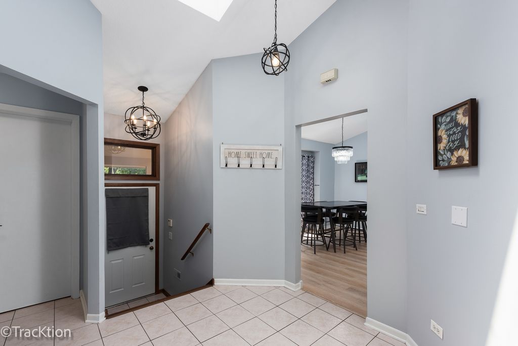 Welcome to this beautifully updated 3 bedroom, 2 bath Mistwood second level townhome with over 2,500 sq ft of updated living space and an oversized two-car attached garage. From the moment you arrive, you'll love the new roof, freshly painted siding and refinished deck and patio, offering standout curb appeal. Located in the highly rated Belle Aire Elementary School district (Rated A!), this home blends modern updates with unbeatable convenience and comfort. Step inside to soaring vaulted ceilings and abundant natural light streaming through six skylights. The living room features a modern retiled fireplace, new LifeProof laminate flooring, and French doors that open to your private outdoor space - ideal for relaxing or entertaining. The eat-in kitchen boasts stainless steel appliances, a breakfast bar, and flows into a spacious dining area perfect for gatherings. Enjoy the ease of a main-level laundry room, adding everyday convenience. The primary suite offers a peaceful escape with a walk-in closet and ensuite bath featuring a reglazed soaking tub and freshly painted tile for a sleek, spa-like feel. Upstairs, a large flex space is ready to become your family room, home office, or guest suite - whatever fits your lifestyle. Enjoy being close to the Metra Train Stop, bus lines, O'Hare & Midway airports, plus shopping, dining, and plenty of parks. EASY ACCESS TO I-88, I-355 and a short DISTANCE TO YORKTOWN CENTER - everything you need! HOA monthly assessment includes water, cable with 3 cable boxes and DVR recording, WIFI, internet, lawn care, snow removal, exterior maintenance, roof, driveway and common insurance. This home is a true must-see!