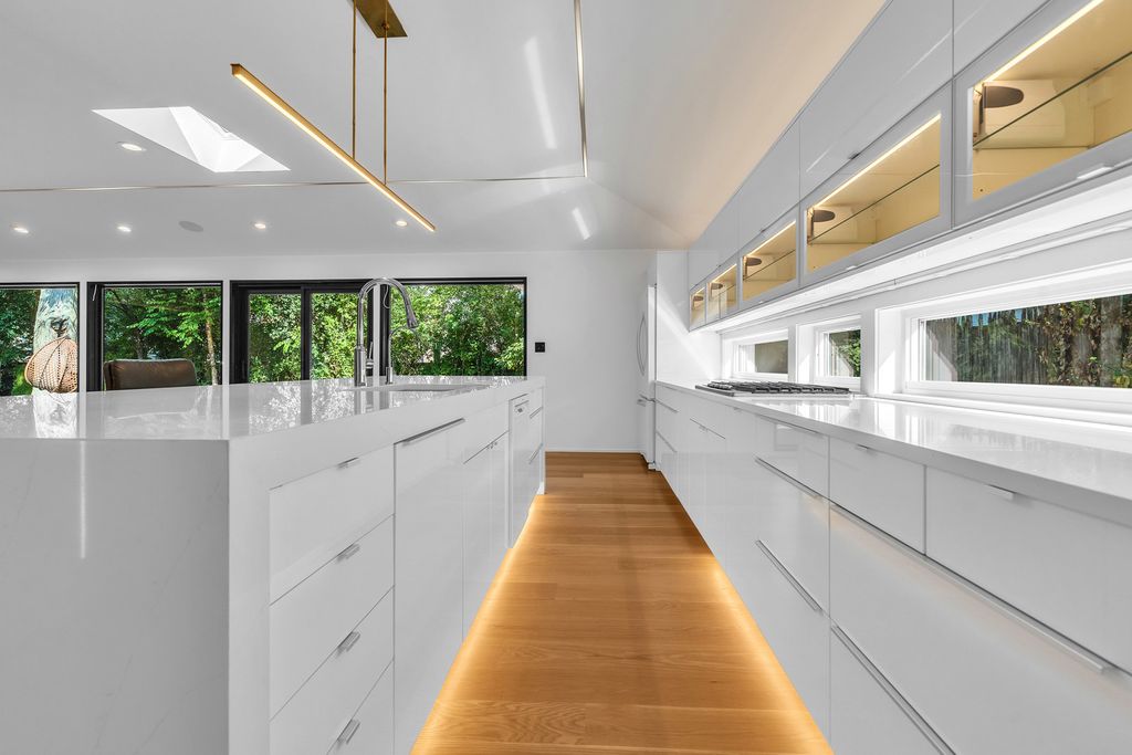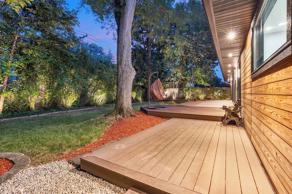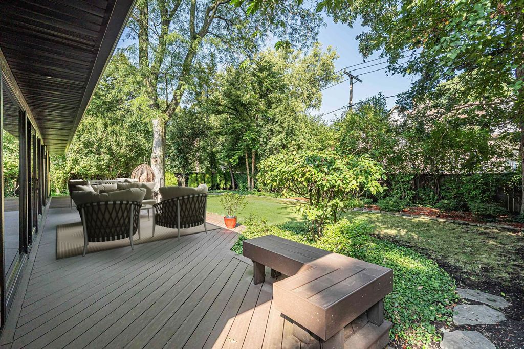 Welcome to an exceptional ranch-style smart home in the peaceful northeast corner of Glenview, surrounded by lush greenery on a large lot. This stunning residence features approximately 2,280 sq ft of elegant design, blending technology with style for daily living and entertaining. As you enter, a grand foyer leads into a formal living room with a cozy fireplace beneath soaring 12-ft ceilings. The kitchen and family room connect seamlessly, perfect for hosting and everyday activities. The gourmet Drury kitchen boasts Grabill cabinetry, Caesarstone countertops, a 6-burner stove, a double oven, a prep sink, and a spacious island. The family room features a striking fireplace wrapped in blackstone. Retreat to the luxurious primary suite, complete with a spa-like shower, elegant vanities, and two large walk-in closets. Two additional spacious bedrooms offer designer finishes and ample closet space. Natural light fills the home through strategically placed windows, creating a warm atmosphere. For entertainment, enjoy an 82" TV with high-fidelity audio and a Control4 system for lights and music. A top-tier Camera surveillance system offers peace of mind. Additional features include a Museum360 HVAC system, efficient sprinkler system, advanced water filtration, and ambient lighting. Step outside to a professionally landscaped, fenced yard with a stunning composite deck, ideal for outdoor dining and relaxation. Don't miss the chance to make this extraordinary property your home-contact the listing agent today for more information!