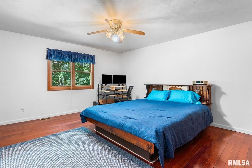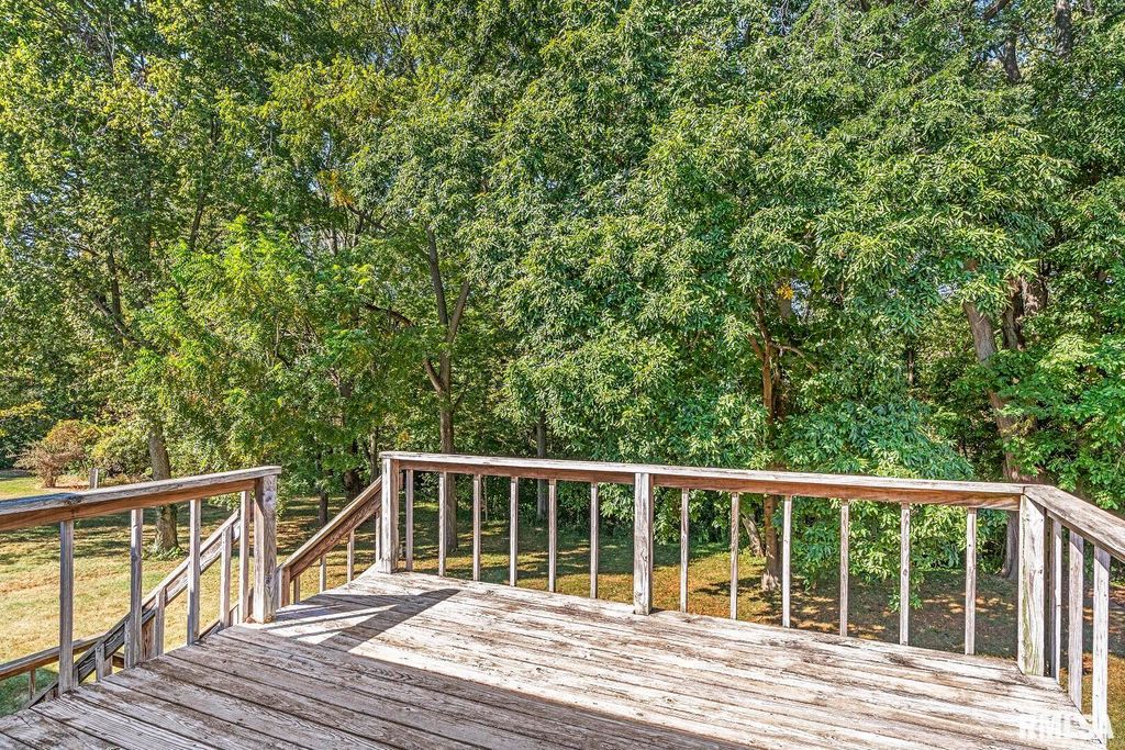Welcome to this ranch style 3 bedroom, 2 bath home with a walk-out basement located in the Pleasant Plains School District. Step inside from the covered front porch into a vaulted ceiling great room with hardwood floors and a cozy gas fireplace. The large great room seamlessly opens into the spacious kitchen and eat-in area. The kitchen is equipped with abundant cabinets, a sizable island, generous counter space, a large pantry and plenty of natural light. Brazilian Cherry solid hardwood flooring extends from the great room throughout the bedrooms. All three main-floor bedrooms are comfortably sized with ample closet space and neutral finishes. Master suite includes a walk-in closet and a secondary closet along with a private bath. Full walk-out basement (approx 1584 sqft) is partially finished offering extra living space perfect for a family or recreation room, a space ideal for a home office, gym or playroom and generous storage. Basement is plumbed for a third bathroom. Finished 2 car garage features a workbench and cabinets. Large windows throughout the home offer abundant natural light and showcase the privacy of a wooded lot with deer sightings included. Enjoy outdoor living on the large deck overlooking the treed backyard and cement pad with double doors as entry into the walk-out basement. Easy access to Sangamon Valley bike/walking path. Updates include: Furnace and Central Air 2016, Roof 2017, Water heater 2022, Garage door opener 2023.