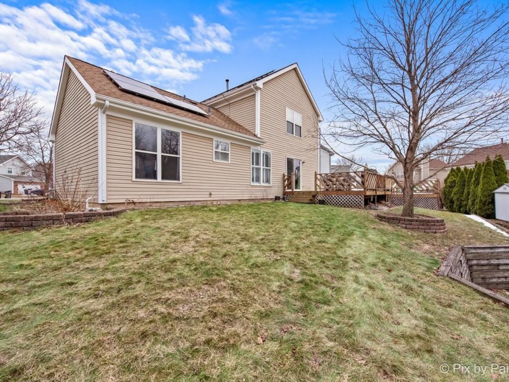 Location, location, location!!! Don't miss the opportunity to own a house in the sought-after Cobblers Crossing Subdivision! Located on a tranquil cul-de-sac and meticulously prepared to welcome the new owners, this home presents a very welcoming Foyer that immediately feels like Home! The Living Room and the Formal Dining room are generously illuminated by natural light and vaulted ceiling creates an open and airy ambiance. The recently remodeled Kitchen with double oven range and pristine neutral Quartz Countertops, along with the Eating Area are truly the heart of the house! Ideal spaces for gathering around the loved ones! It flows beautifully into the cozy Family Room, where you'll find a gas start Fireplace adorned with white tile, reflecting brightness throughout the space. This area conveniently provides access to a well-appointed Powder Room, Laundry Area, and the attached two-car Garage. The main floor layout combines the best of both worlds, offering an open-concept flow, it feels open and airy, but each room still has its own cozy definition! Head Upstairs, and you will find a spacious Master Bedroom, complete with a walk-in closet and convenient access to a Jack and Jill Full Bathroom with double sink. There are Two Additional comfy Bedrooms, making this house a warm and inviting space for everyone! The Eating area leads right out to a lovely two-tier Deck! It's perfect for entertaining friends or just enjoying a quiet meal outdoors. The Backyard is a generous size with a retaining wall, giving you plenty of space to enjoy nature. Oh, and did I mention the freshly painted exterior wood trim and solar panels? Talk about curb appeal and energy savings! The property is situated just five minutes from I-90, a mere twenty-five minutes from O'Hare International Airport, and minutes away from Route 31, Route 20, Route 25, Shoe Factory Road, Route 59, Route 58, and Route 72. This strategic positioning ensures ease of access to a wide array of amenities and destinations, offering exceptional connectivity! Yes! That's a truly Excellent Location! Book your private tour today!