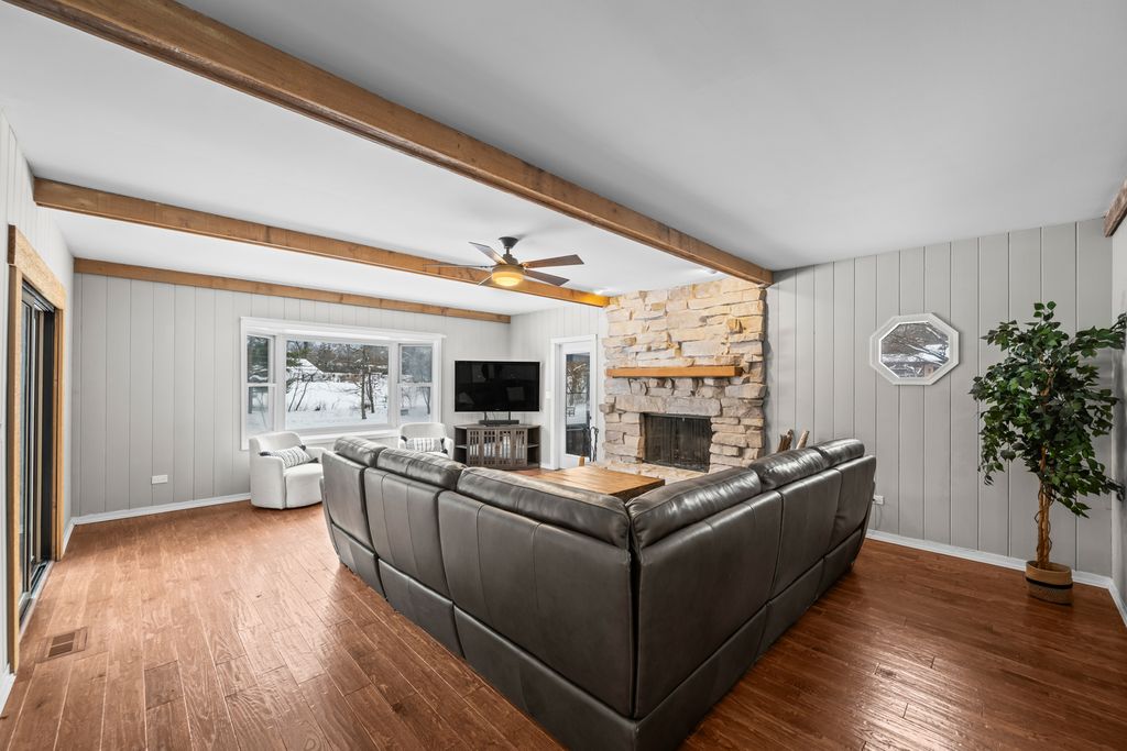 Nestled in one of Kildeer's most peaceful neighborhoods, this beautifully updated 2-story home sits on 1.1 acres of scenic, tree-filled land, offering stunning views from every room. Located on a quiet private lane, the property provides a serene retreat for both relaxation and entertaining. Enjoy winter nights by the fireplace or warm summer days on the expansive brick patio, which includes a separate cooking area and ample seating space. In the evenings, unwind by the firepit beneath the stars, surrounded by nature. Inside, the home boasts an inviting foyer that leads to a spacious dining room and a large living room. French doors open into the oversized family room with a bay window and a striking stone fireplace, plus direct access to the charming screened-in patio. The sun-filled, remodeled kitchen features quartz countertops, a gourmet island, stainless steel appliances, and a coffee and wine bar. Adjacent to the kitchen is a generous dining area and a functional office suite, conveniently located near the powder room, laundry, and with direct backyard access. The second floor is home to a primary bedroom with a lofted closet, dual additional closets, and a luxurious ensuite with a grand walk-in shower. Three additional bedrooms share another beautifully updated bathroom with a spacious shower. The fully finished basement offers plenty of flexible space, including a recreation area, bar, large utility/storage room and home gym-ideal for entertaining or creating a personal retreat. The property also features a renovated 3-car garage with fully built-out attic offering approximately 900 sq ft of storage space, new roof and gutters (2020), and ample parking. With its oversized driveway and backyard, there's plenty of room for family activities. This stunning home is just minutes from Lake Zurich High School, Deer Park Town Center, and the Farmington Bath & Tennis Club. Recent updates include a renovated kitchen, bathrooms, new flooring throughout, and a new main entry door. Visit this exceptional home and begin imagining your first summer celebration in one of the most desirable lots in Kildeer!