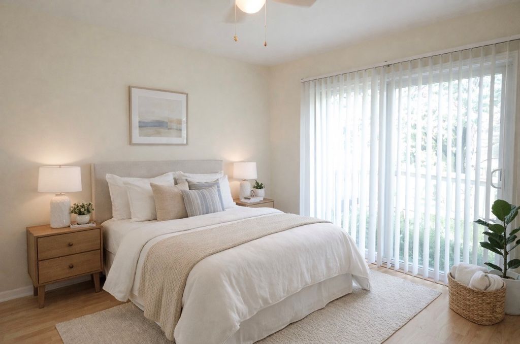 Spacious 2 bedroom 1 bathroom townhouse with vaulted ceilings. Sliding doors in both bedrooms lead out to private fenced in yard. Home freshly painted throughout. One car attached garage.