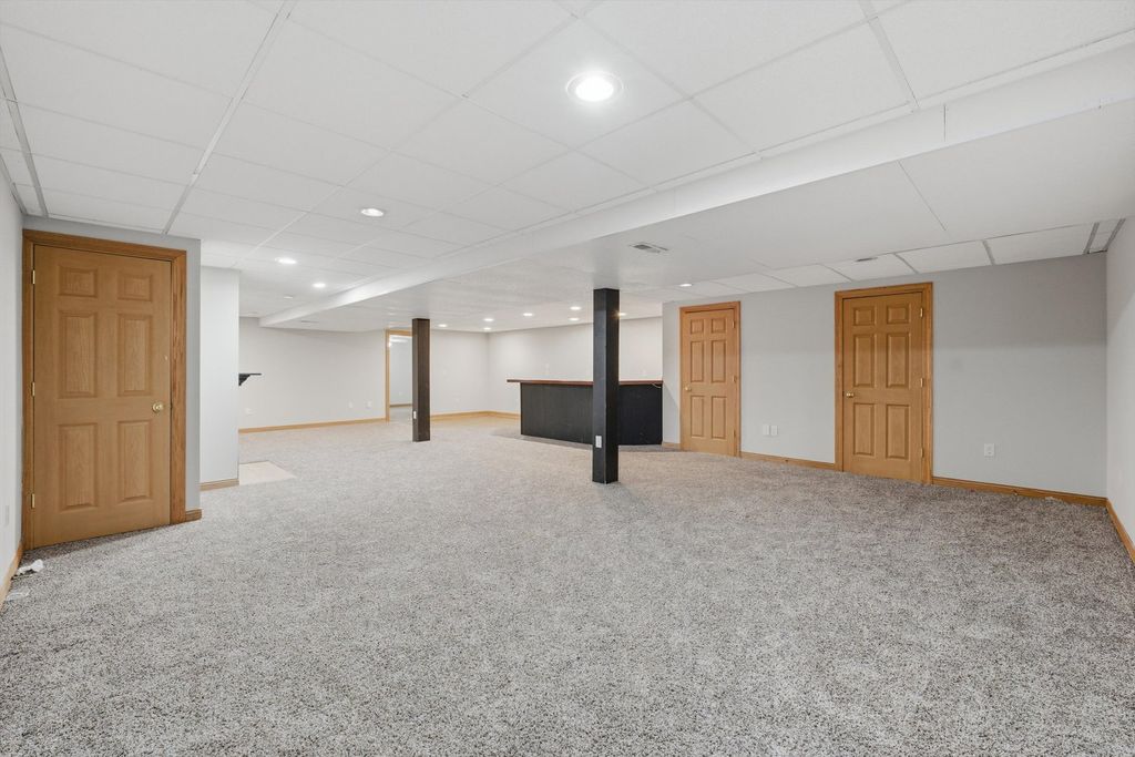 THIS BEAUTIFUL HOME HAS SO MANY DESIRABLE FEATURES, SUPER CUTE FRONT VERANDA,FRESHLY PAINTED THROUGHOUT, NEW APPLIANCES, HUGE LIVING ROOM WITH CATHEDRAL CEILING AND A BRICK FIREPLACE (2 FIREPLACE IN THIS HOME), SEPARATE LAUNDRY ROOM, COVERED PATIO, LARGE 27X27 GARAGE, ADORABLE CUSTOM SHED, FULL FINISHED BASEMENT WITH ADDITIONAL BEDROOM, BATH AND FIREPLACE, ALMOST 1/2 ACRE, CORNER LOT WITH DRIVE WAY TO FATASTIC SIZE 2 CAR GARAGE. MOVE IN READY.