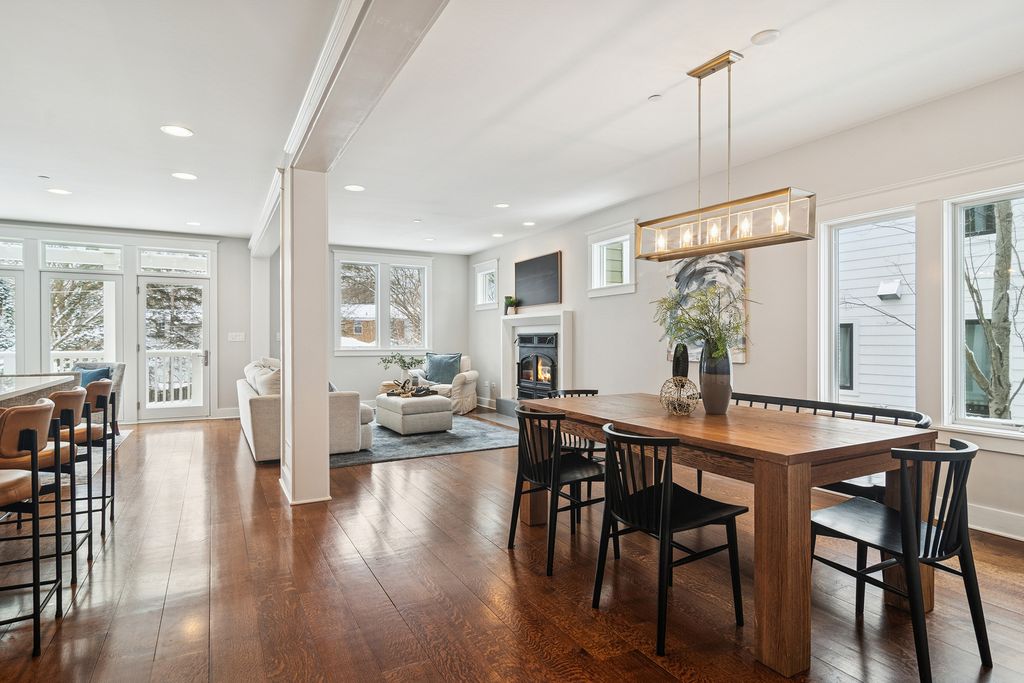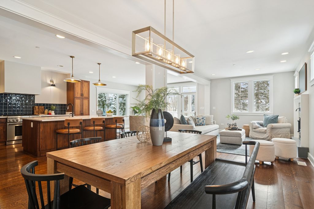 Welcome to 721 Meadow Lane, an exceptional custom-built home, offering more than 3,600 sq ft of thoughtfully designed living space across three finished levels. Perfectly positioned just minutes from Copeland Elementary, scenic Independence Grove, and charming downtown Libertyville, this home combines luxury, comfort, and convenience in a truly special way. From its picture-perfect curb appeal and inviting front porch to its beautifully landscaped backyard, the home exudes warmth both inside and out. Step through the front door and into an airy, open floor plan highlighted by wide plank white oak hardwood floors, custom millwork, and abundant natural light. The living room provides a warm, welcoming atmosphere and flows seamlessly into the gourmet kitchen and dining area--ideal for both relaxing evenings and lively gatherings. Next to the foyer, a flexible main-floor room-perfect for a home office, fitness space, or playroom-offers bright natural light. A magnetic accent wall adds a playful touch just off the hallway. The kitchen is a standout, featuring freshly updated countertops and tile, custom cabinetry with new open shelving, a newly built range hood, upgraded lighting, stainless steel appliances, new granite counters, and a generous center island with seating. In the adjacent living space, the sellers enhanced the room with a new 3-pane window and a striking new fireplace surround, elevating both style and function. Make an easy transition outdoors to the trellis-covered deck or the new paver patio, newly designed and installed, all overlooking a serene, landscaped backyard with newly added garden beds. Upstairs, retreat to the luxurious primary suite featuring soaring ceilings, a freshly painted and reorganized walk-in closet with an IKEA closet system, and a spa-like bath with a walnut vanity, soapstone countertop, and porcelain-tiled shower with a river rock base. Three additional bedrooms and a beautifully renovated hall bath provide comfortable private spaces for family or guests. The former 2nd story laundry room has been thoughtfully converted into a second office-perfect for remote work-while laundry hookups remain fully operable if preferred. The finished English basement adds yet another layer of versatility, offering a spacious family room with a reclaimed-wood accent wall, a full bath, generous storage space, and a mudroom with direct access to the backyard. The sellers enhanced this level as well, adding pocket doors, a built-in Murphy bed, and relocating the laundry to create an efficient and flexible layout. Additional updates include smart locks, a water softener, as well as modern efficiency features such as 2-zoned HVAC and a tankless water heater. A detached 2-car garage completes this impressive offering. Beautifully updated, impeccably maintained, and situated in one of Libertyville's most desirable locations, 721 Meadow Lane offers the perfect blend of style, comfort, and functionality. Welcome home!