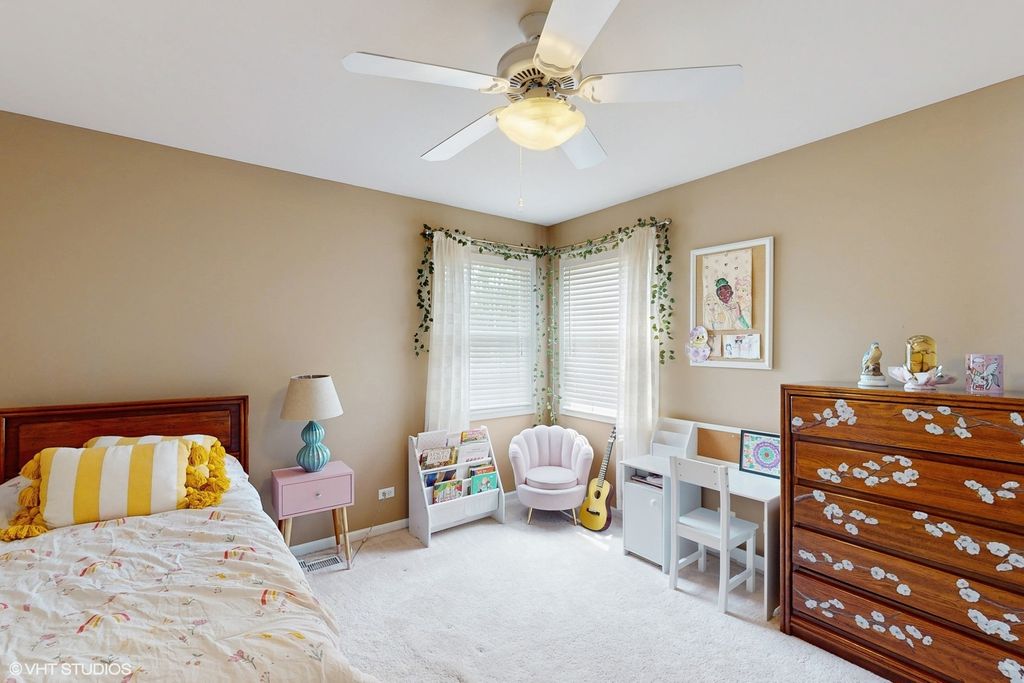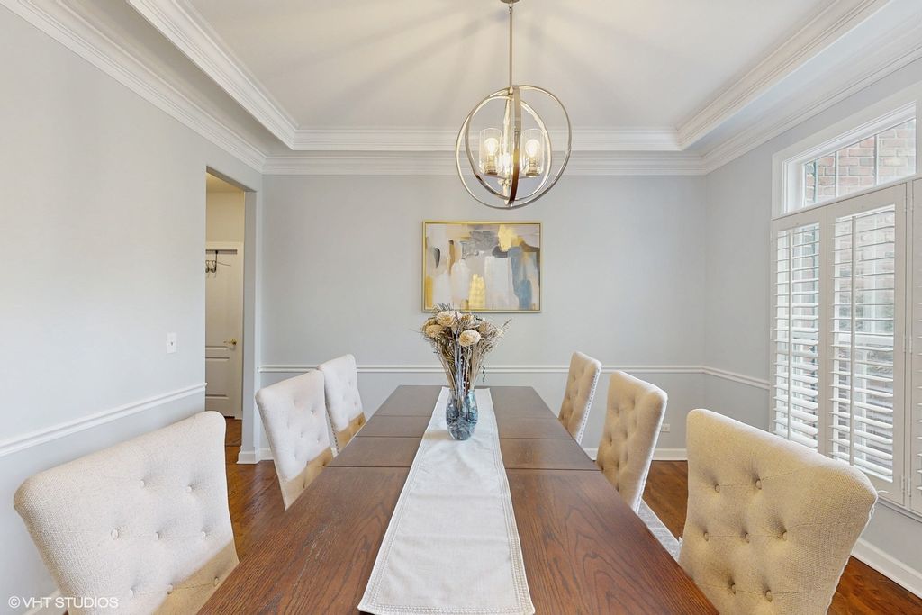 Warm and move-in ready home in the sought-after Tall Grass community, featuring a new roof (2020), new furnace, newer A/C, 3-car garage, finished basement, and fresh updates throughout. A bright two-story foyer with an elegant winding staircase welcomes you into sun-filled living and dining rooms with vaulted and tray ceilings, rich hardwood floors, and ideal spaces for entertaining. The updated white kitchen offers refinished cabinetry, granite countertops, a large island, and a butler's pantry, opening to a cozy sunroom with its own fireplace, perfect for morning coffee or relaxing evenings. The inviting family room showcases a dramatic floor-to-ceiling brick fireplace, vaulted ceilings, skylights, and gleaming hardwood floors. A private main-floor office with French doors and built-ins provides an ideal work-from-home retreat. Upstairs, the spacious primary suite impresses with tray ceilings, two walk-in closets, and a spa-inspired bath featuring a whirlpool tub, double vanity, skylight, and separate shower. Three additional bedrooms offer flexibility for family, guests, or hobbies. The finished basement adds valuable living space with a half bath, perfect for a recreation room, gym, playroom, or media room. Enjoy outdoor living on the low-maintenance deck overlooking a beautifully landscaped yard-ideal for summer entertaining or quiet evenings under the stars. All set within the highly acclaimed Tall Grass subdivision, offering top-rated schools, resort-style pools, tennis courts, walking paths, parks, and a vibrant clubhouse. Conveniently located near Route 59, shopping, dining, and just minutes from Downtown Naperville.