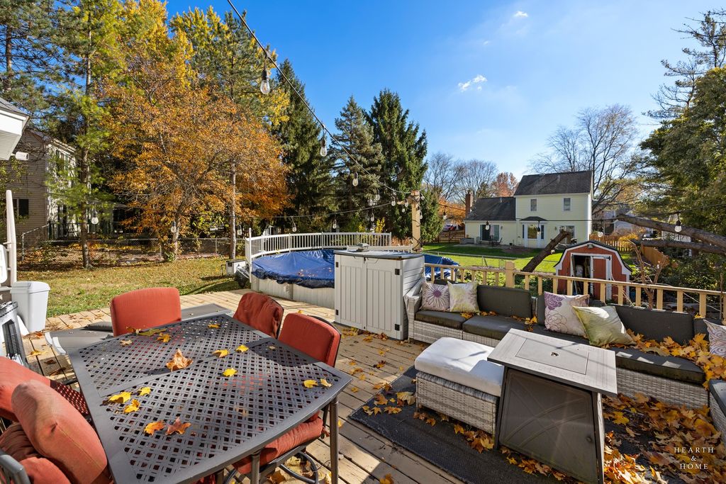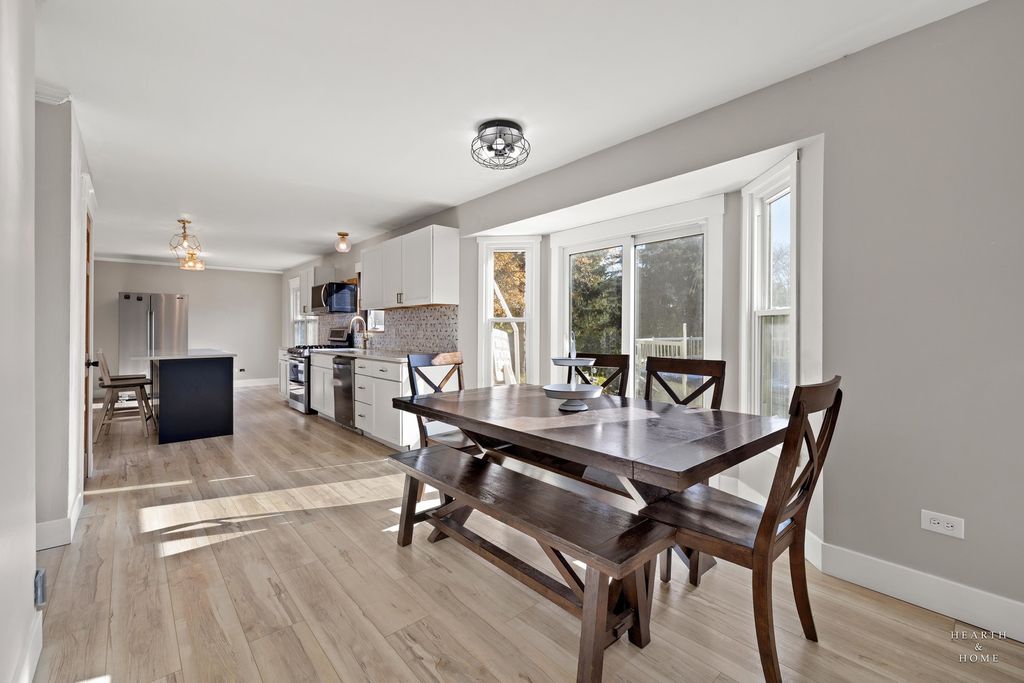 Perfect Cul-de-Sac Location in Fox River Grove's highly sought-after Foxmoor subdivision, this spacious home offers comfort, updates, and room to grow. The second floor features four bedrooms plus a versatile bonus room-ideal for a fifth bedroom, home office, or playroom. The recently remodeled island kitchen serves as the heart of the main level, designed for both everyday living and entertaining. Gas-start fireplace warms up the family room on those cold winter evenings. Enjoy extra space in the partially finished basement with a bar, and step outside to a spacious deck and heated pool- perfect for summer gatherings! Major mechanicals have been recently updated, including the furnace, air conditioner, and water heater, giving the home great bones. With just a few finishing touches needed (mainly trim and paint), this home is ready to shine. Fantastic location, just minutes from Algonquin Road Elementary, Fox River Grove Middle School, downtown Fox River Grove, shopping, restaurants, and the Metra station! Priced to sell! Take advantage of opportunity NOW!