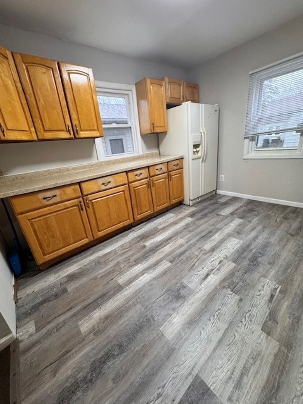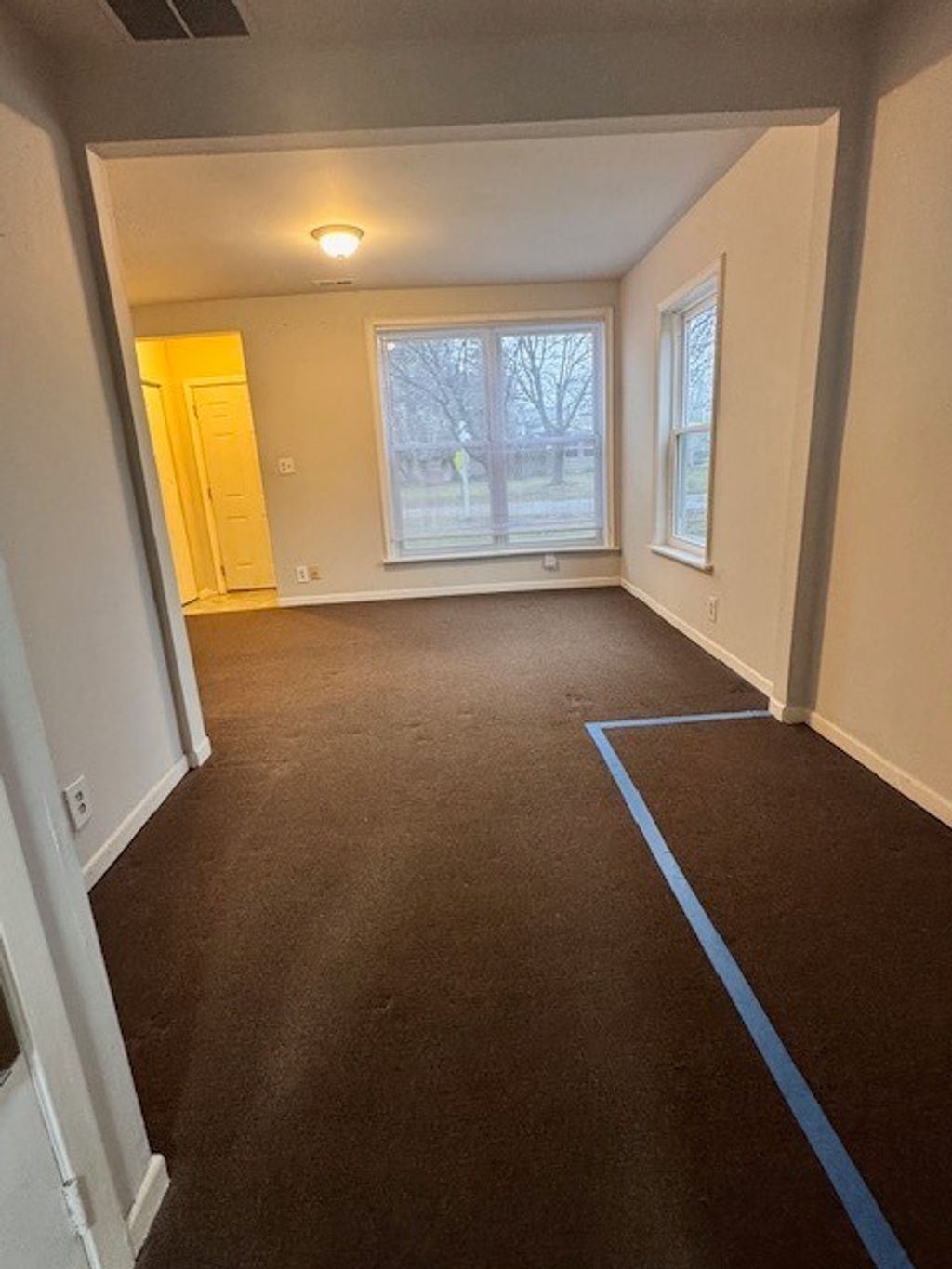 Quaint cottage living awaits! This intimate 1-bedroom, 1-bath home features an oversized primary bedroom, thoughtfully created from a former two-bedroom layout. Nestled near a lake, pond, and park, the setting is peaceful and scenic. Enjoy outdoor living in the backyard with a deck - perfect for relaxing or entertaining. Recent updates include a new kitchen floor (2025), new roof, siding, and windows (2020), a water heater (2021), and HVAC (2011). Washer and dryer hookups are conveniently located in the living room and can easily be enclosed if desired. A window A/C unit is included. Cozy & comfortable - this sweet cottage is ready to welcome you home.