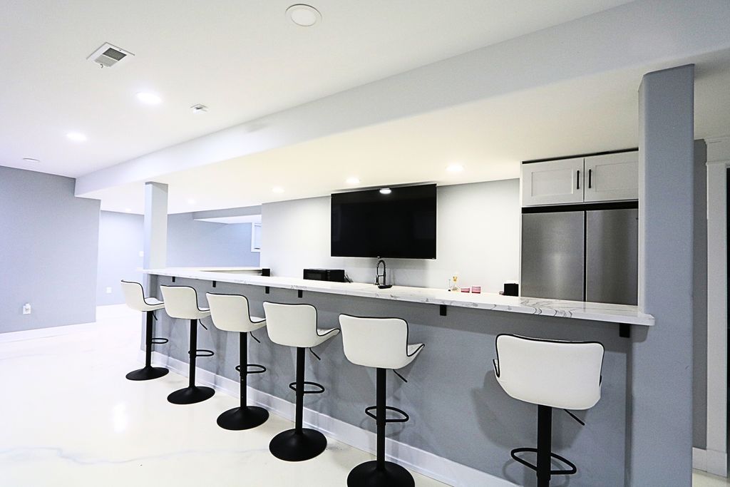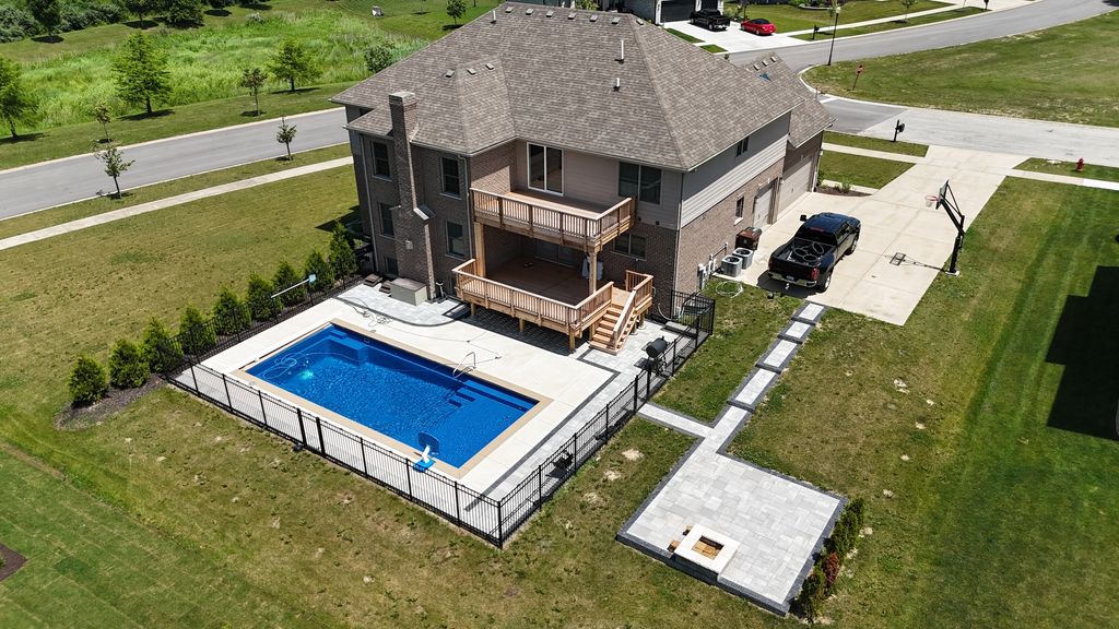 Luxury meets lifestyle in this stunning 5000 sq ft fully rehabbed masterpiece nestled in the prestigious Timber's Edge of Frankfort! This 6-bedroom, 5.1-bath, 3 car garage estate is designed to impress with an open-concept layout that flows seamlessly through formal living and dining rooms, anchored by a dramatic 2-story great room with floor-to-ceiling windows and a cozy fireplace. The chef's kitchen boasts Zline commercial-grade stainless appliances, custom cabinetry, full quartz backsplash, and a striking 14-ft waterfall island. A butler's pantry and spacious dinette add both function and flair. The main level offers a guest bedroom with a full bath, plus a laundry room equipped with dual washers and dryers. A sleek tempered glass balustrade staircase ascends from the basement to a catwalk overlooking the main floor, adding a touch of modern sophistication. Upstairs, retreat to the lavish owner's suite featuring a spa-like ensuite bath, dual walk-in shower, a stand alone soaking tub, two walk-in closets plus a dressing room. A junior ensuite and two additional bedrooms connected by a Jack-and-Jill bath complete the upper level. The finished basement is an entertainer's dream with a guest ensuite, custom wet bar with refrigerator, family room, and visitor's half bath. Step outside to your private resort with three outdoor entertainment zones, including two expansive 19-ft red cedar decks with can lighting and ceiling fans and under deck draining system, a heated in-ground pool, patio, and fire pit. Additional highlights: custom lighting throughout, 3 fireplaces, epoxy floors, high-end finishes, and prime location near parks, dining, shopping, trails, and Lincoln Way Schools. This home is a rare find-schedule your private tour today!