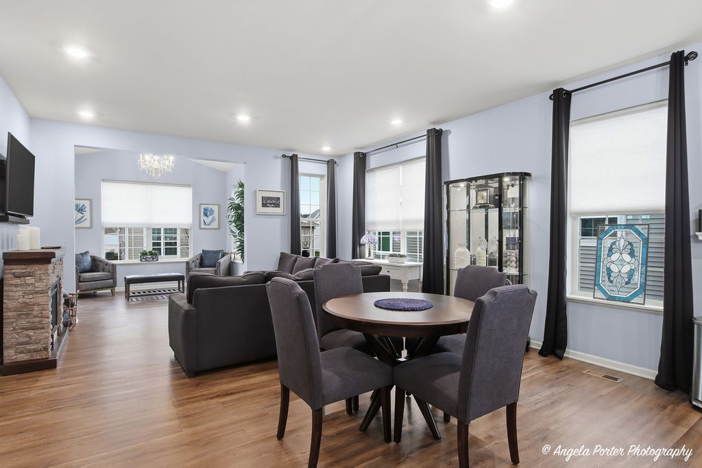 Highly sought-after 2-bedroom ranch with office/den AND sunroom, perfectly situated on a premium lot with rare, open backyard views. This beautifully upgraded home features an open-concept kitchen with stainless steel appliances, upgraded cabinetry with decorative hardware, quartz countertops, designer tile backsplash, pantry, and a spacious island with added drawers and cabinetry for extra storage and breakfast bar seating. The vaulted sunroom/4-season room fills the main living areas with natural light and provides direct access to the expanded patio-ideal for relaxing or entertaining! Additional highlights to this pretty home include 9-foot ceilings, recessed lighting, and custom blinds and curtains throughout. The private primary suite offers an ensuite bath with dual vanity, a large shower with built-in bench, and a walk-in closet with custom organizers. Enjoy the 2nd bedroom and the flex room for a home office, study, or exercise room! A separate laundry room includes added shelving, and the washer and dryer are included. Smart home features include a smart thermostat, Ring doorbell system, and keyless entry. Savor outdoor living with the added custom brick pavers that more than double the patio space, along with extensive landscaping featuring perennials in the front, back, and sides of the home. The 2-car garage includes a convenient service door. Located in the Wi-Fi-certified Andare' at Talamore, a premier 55+ active adult community offering a clubhouse with billiards room, fitness center, two pools, stocked fishing pond, and walking paths. Low maintenance living at its finest, this exceptional home offers thoughtful upgrades and beautiful finishes! It has all been done for you!