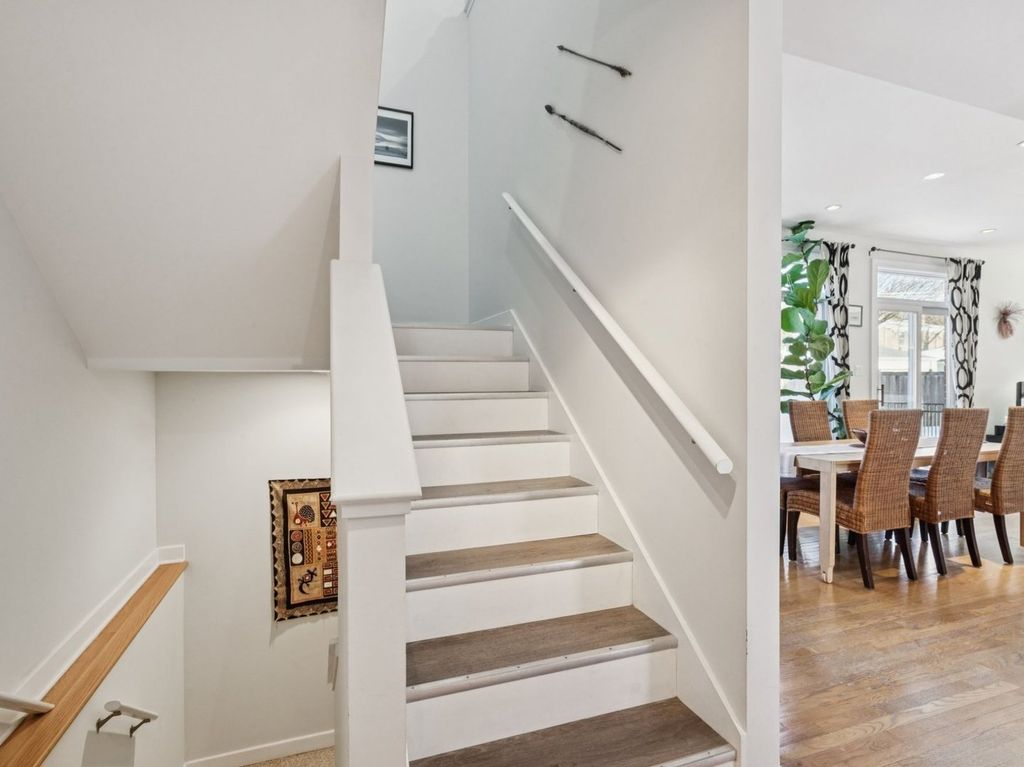 Cool Scandinavian vibe in this edgy townhome that lives like a single family. A welcoming foyer with coat closet guides you into the large dining room that overlooks the huge fenced yard and is graced by large windows. The casual living room with modern stovepipe fireplace, and east-facing windows brings warmth and light to the home. The first floor finishes with a galley kitchen with nice appliances and good storage, and a powder room. The second floor features a great primary suite with a walk-in closet and en-suite bath. The second bedroom has a private balcony and walk-in closet. The loft is a perfect office or den or potential for a third bedroom. The second floor large laundry room is a massive convenience. The lower level features a large media room, great storage and full bathroom. This home comes complete with an attached, two car garage and the ease of an association that handles exterior maintenance. Get all of the benefits of a single family home with the low maintenance of a condo.