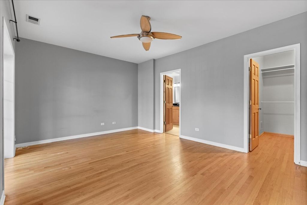 EXTRA WIDE SUNNY & SPACIOUS 2BD/2BA+OFFICE AREA! CHEF'S KITCHEN W/ TONS OF CABINET SPACE, GRANITE C-TOPS, ISLAND/BFAST BAR & WINE COOLER W/ SS APPLIANCES. EXPANSIVE UNIT GETS GREAT LIGHT, FEATURES HDWD FLRS THRU-OUT W/SPACIOUS PRIMARY BEDROOM & WIC. PRIMARY BATH W/ JACUZZI & SEPERATE SHOWER AND DOUBLE SINKS. LRG PRIVATE DECK, IN UNIT WASHER/DRYER. WALK TO EVERYTHING BUCKTOWN / WICKER PARK HAS TO OFFER - SHOPPING, RESTAURANTS, BARS, PUBLIC TRANSPORTATION AND MORE! 1 EXTERIOR PARKING SPOT AND EXTRA STORAGE INCLUDED. YOU CAN'T HEAR ASHLAND ONCE YOU ARE INSIDE - AND BDRMS ARE IN BACK OF UNIT.