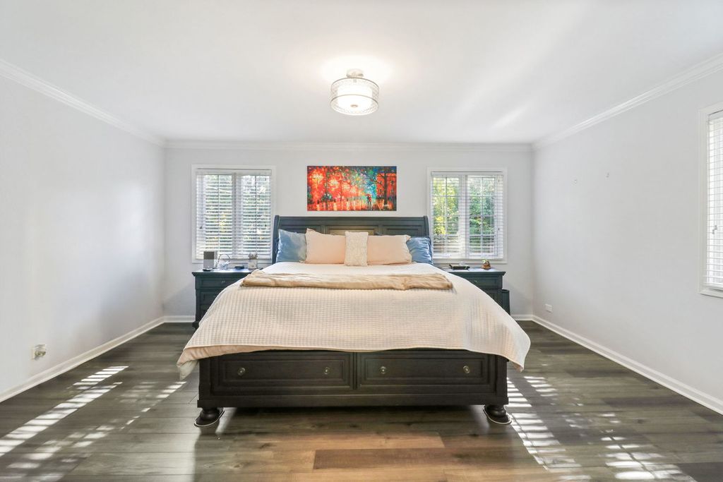Motivated seller offering home below appraised value with new roof; get instant equity when you move in! Welcome to this beautifully updated traditional brick and cedar home offering approximately 3,966 square feet of finished space, featuring 4 bedrooms (primary on the main level), 3 full bathrooms, 2 half bathrooms, and a finished basement with bar and sauna, all set on a private fenced backyard in one of Northbrook's most desirable mature tree subdivisions. Perfectly situated within walking distance to Village Green Park, Meadowhill Aquatic Center, Meadowbrook Elementary, and Northbrook Junior High, this home blends convenience, charm, and modern updates. Inside, the first floor boasts a newly remodeled kitchen with Sea Pearl polished quartz countertops, Sub-Zero refrigerator, double oven, high-end appliances, and a large sink with disposal. The private primary bedroom wing offers a true retreat, complete with dual closets and a remodeled bathroom featuring a new 3-piece hard-surface shower with seamless glass door and modern fixtures. The sunroom features heated floors for cozy mornings, while two spacious family gathering areas, one with a wood-burning fireplace, provide ample space for entertaining. A formal dining room comfortably accommodates a table for ten. Upstairs, you'll find three generously sized bedrooms and two full bathrooms, including one bedroom with a private bath-ideal for in-laws, multi-generational living, or a junior/princess suite. An additional bonus room offers flexible space for storage, meditation, a mini gym, or a quiet study. The updated finished basement (2024) includes new flooring, a large entertaining area with wet bar, a new half bathroom, and a multipurpose room suitable for a gym, office, or craft space. Adjacent is a relaxing sauna for daily wellness and relaxation, along with a large mechanical/storage room for added functionality. The private fenced yard features an oversized freshly painted deck with an adjacent 4-6 person hot tub, perfect for entertaining or unwinding outdoors. Recent exterior improvements include a brand-new privacy fence, garage floor, and full replacement of the driveway and sidewalks at the end of 2023. This meticulously maintained home has been thoughtfully upgraded with two new furnaces and central air units (2022), a new water heater (2024), spray foam attic insulation (2023), and a brand-new roof (October 2025). Additional features include updated 200-amp service with backup generator, smart thermostat, Ring video doorbell, whole-house humidifier, radon mitigation system, central vacuum piping, sprinkler system, and Lake Michigan water. Interior updates include a brand-new powder room, panel doors with new hardware, and window treatments throughout. Located in highly regarded School District 28 and Glenbrook North High School, this home offers a rare combination of traditional character, modern amenities, and a prime location. Spacious, upgraded, and move-in ready; this Northbrook gem is prepared to welcome its next owner.