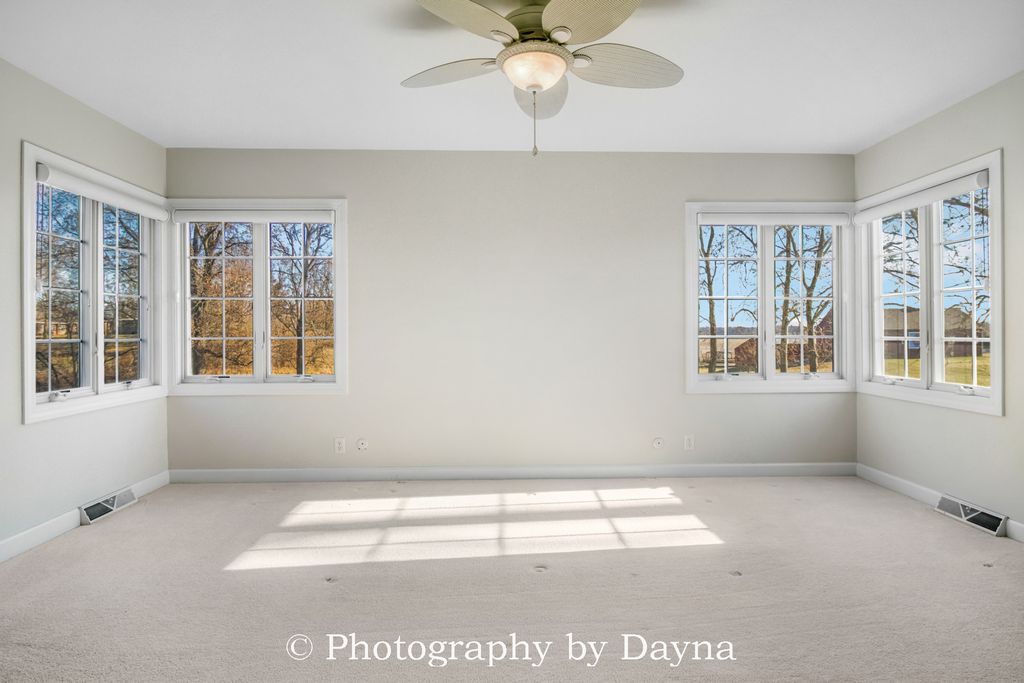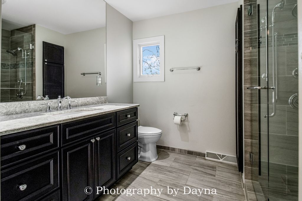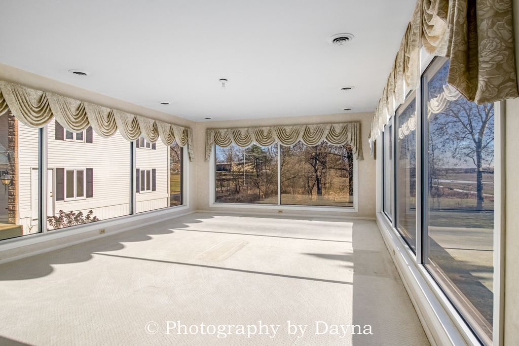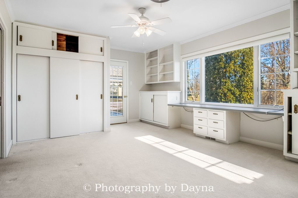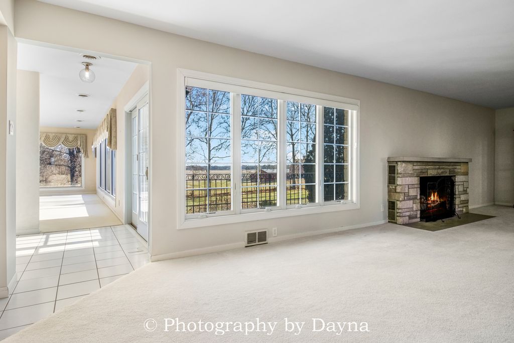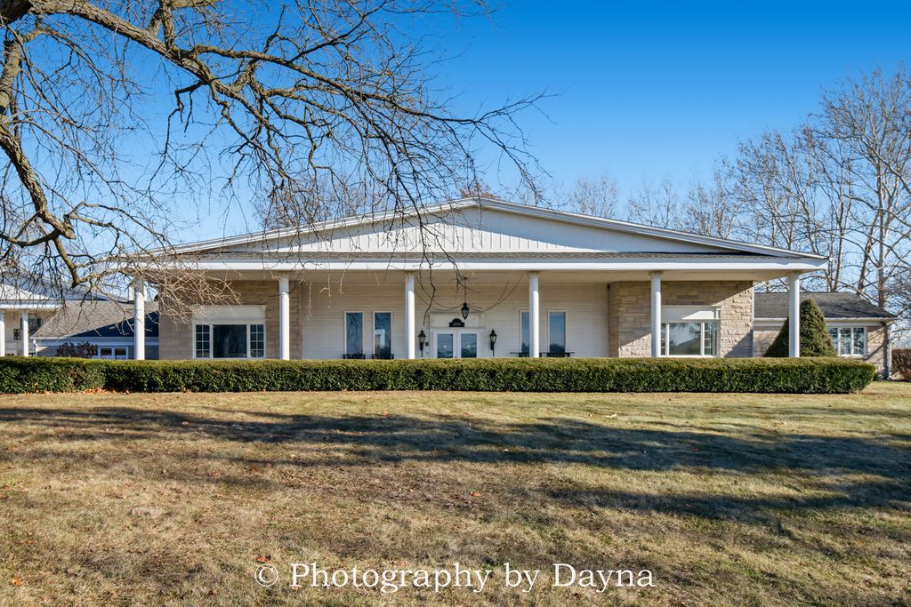 Gracefully set on 2.5 private acres, this exceptional 4,300 sq ft ranch residence offers timeless elegance and expansive living spaces. A large covered front porch and grand foyer create a warm and impressive introduction to the home. The thoughtfully designed layout features four bedrooms, including two primary suites, and five and a half baths. Ideal for multigenerational living or hosting guests in comfort. Custom storage abounds with oversized closets, cedar closets, and built-in organizational systems throughout the home. Entertain effortlessly in the spacious living room and formal dining room, or relax in the den and private office. An additional flexible room-previously used as an office-offers endless possibilities as a library, study, playroom, craft space, or optional fifth bedroom. The eat-in kitchen is the heart of the home, showcasing an island, stainless steel appliances, and ample space for gathering. The walkout lower level is designed for elevated entertaining, featuring a large family room, recreation room, full bathroom, and a beautifully appointed bar that can easily function as a second kitchen-perfect for hosting or extended stays. Car enthusiasts and hobbyists will appreciate the two-car attached garage and an impressive six-car detached garage, complete with a 1,200 sq ft private apartment. All garages are fully heated and air-conditioned. A whole-house generator ensures uninterrupted comfort and peace of mind. Outdoor living is equally exceptional, with a two-level patio offering tranquil views of the surrounding landscape-ideal for entertaining or quiet moments of relaxation. This remarkable property combines luxury, versatility, and privacy, making it a truly rare offering.