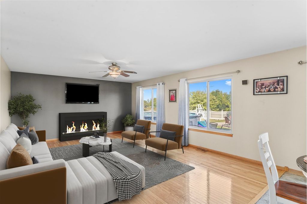 Welcome to this modern marvel custom build in Fall Creek. Cared for by a single family since construction, no single detail has been spared. Located in a quaint neighborhood close to schools, parks, shopping, and more - this home is ready for you to make lasting memories for years to come. An entertainer's oasis welcomes you into a vaulted foyer, open to the living, dining areas and beautiful wooden staircase. The bright, open living areas and a family room that flow seamlessly into the beautiful maple wood cabinetry in the kitchen, ideal for staying connected while entertaining and cooking. Let the party continue! Extend winter hospitality to the completely finished basement showcasing a complete bar with extra bedrooms and full bathroom ideal for guests, a home office, gym, or playroom or better yet, all three! In the summertime, watch your hosting transform for summer BBQs on the stamped patio as your guests splash in the above ground pool. The double door shed awaits your pool storage, tools and hobbies. You will love the heated and seal coated attached garage, the double laundry set up, the recently replaced roof (2024) and the seller's home warranty for added peace of mind! Ask your realtor for an updated list of features and upgrades.