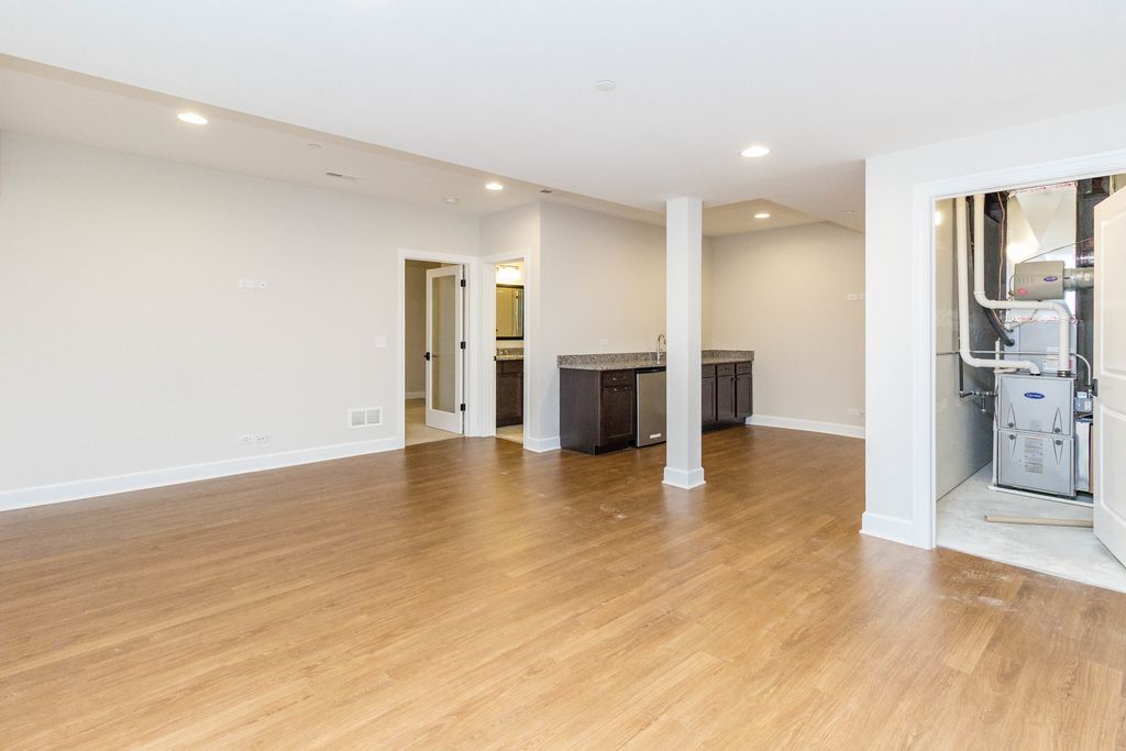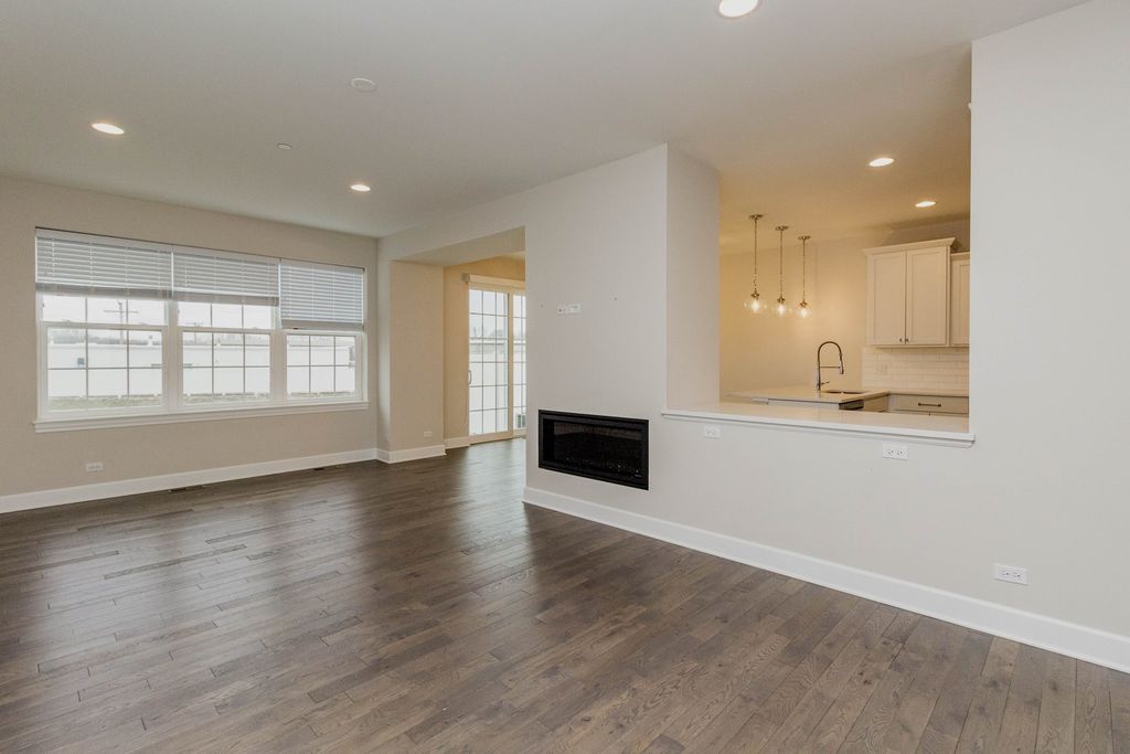 Spacious Multi-Level Townhome with Finished Basement, Outdoor Space & 2-Car Garage and additional parking on the street. This modern townhome offers a functional three-level layout designed for today's lifestyle. The main level features an open-concept living and dining area with a gas fireplace, flowing into a large kitchen with quartz countertops, a breakfast bar, glass tile backsplash, and stainless steel appliances including an over-the-range microwave and dishwasher. Direct access to a private patio and yard makes entertaining easy. The second level includes three well-proportioned bedrooms and two full bathrooms, highlighted by a primary suite with a walk-in closet. An in-unit washer and dryer are conveniently located on the same level as the bedrooms. The fully finished basement adds exceptional flexibility, featuring a large recreation room, wet bar with beverage fridge, dining area, king-sized bedroom, and a full bathroom-ideal for guests, a home office, or additional living space. Additional features include upgraded modern lighting with chandeliers and pendant fixtures, smart thermostats, USB-equipped outlets, an attached two-car garage, plus two additional driveway parking spaces.