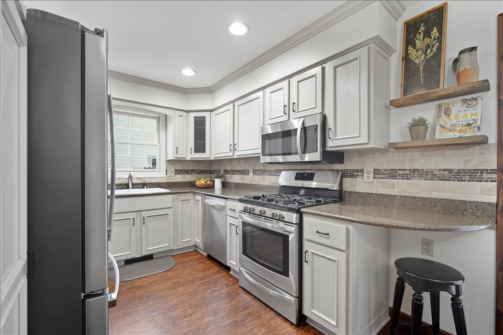 Beautifully updated 4 bedroom home in Northpoint. Kitchen has updated cabinets, quartz countertops and stainless appliances. Neutral paint and LVP flooring throughout main floor. Spacious primary bedroom with updated bathroom. Basement is finished with large family room and potential 5th bedroom. Professionally landscaped front and back. Recent updates include new HVAC 2023 & new windows 2021. Other updates include new garage door opener, refrigerator & garage floor. Easy access to Northpoint school & Tipton Park. Close to plenty of grocery stores and restaurants.