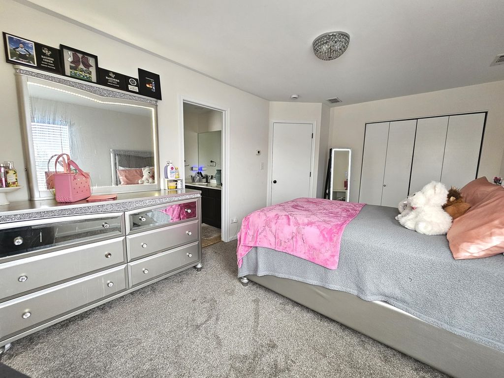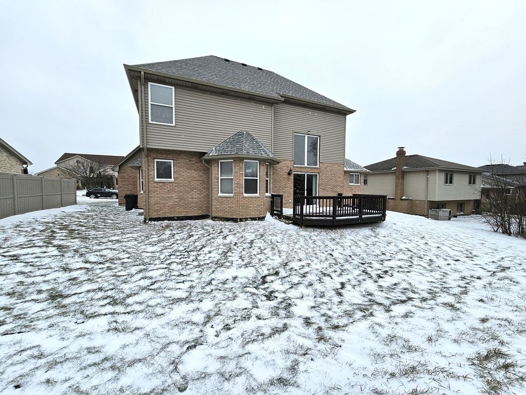 Absolutely awesome home, 4 Bedrooms 2.5 bath, only 24 yrs old. You will be pleasantly impressed the minute you step into this inviting and bright, dramatic 2 story sunken living room with 2 stories of windows and sliders to the back deck overlooking wooded backyard, with no neighbors behind you. This lovely home offers a desirable main floor Master bedroom, private suite with whirlpool tub, double sink, separate shower and walk-in closet. You will love the elegant, contemporary brand new kitchen with two-tone, 42inch cabinets, beautiful, stylish, new countertop, backsplash and flooring. New, quality stainless still appliances. Nice and bright breakfast nook plus a spacious formal dining room with beautiful hardwood floors. 2 bedrooms on the second floor with brand new carpet and a full bath. Main level offers a nice size laundry room for your convenience. The entire house is freshly painted. Full finished basement with with a 4th bedroom, office, workout room and a Rec room. The roof was replaced in 2024. This house has everything for everyone to enjoy a very comfortable life style plus walking distance to Arbor Park Middle School, Tinley Park high school, forest preserves and Tinley Creek Trails within a mile. Horse Stables nearby. Close to golf, shopping, restaurants. Great location, 5 min to I-57 and I-80.