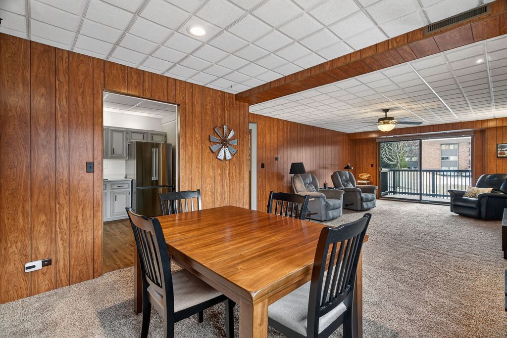 Updated 3BR/2BA end-unit condo with exceptional natural light and modern upgrades throughout. Spacious layout with 2 private balconies overlooking park-like courtyards. Updated kitchen with shaker cabinets, hardware, stainless steel LG/Bosch/Frigidaire appliances. Master suite includes private full bath, room-darkening shades. We have an in-unit washer/dryer. Bright living room; fireplace/mantel present (not connected to gas). Accent and track lighting added. Newer Furnace/AC. Secure building with elevator to underground climatized garage. Unit includes 2 parking spaces + 2 storage units. HOA covers water (softened/unlimited), common area maintenance/insurance, lawn care, snow removal, refuse, clubhouse access with heated indoor pool, workout facility, sun decks, courtyards, pavilions & BBQ areas. Carefree living with excellent amenities. Disclosures: Freezer & freestanding shelves to be removed. Key for wall safe not provided. Electric heat in master not connected. Fireplace not connected to gas line. List of detailed updates in Documents