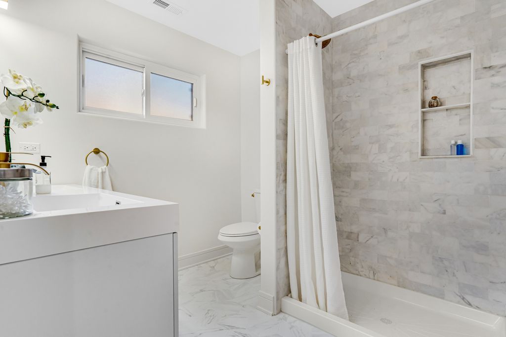 Stunning, fully rebuilt home in Chicago's desirable West Beverly neighborhood. This home features four bedrooms and four brand-new full bathrooms, all thoughtfully designed with modern finishes. The beautiful front door enters into a warm and inviting living room that opens to a family/ kitchen/dining area. Additionally there is a first floor bedroom/den and a full bath. There are new hardwood floors throughout the first floor. The second floor boasts three bedrooms. The primary suite includes a full bath and walk in closet. There are two more generous sized rooms and another full bath, two walk-in hall closets and a 2nd floor laundry. The full basement is completely finished featuring a bedroom/office, family area, full bath and laundry. The mud room is perfect for coats, boots, book bags, etc. You are going to love the new 3 car garage and side drive The new windows, HVAC, electric, plumbing, and roof-offer peace of mind for years to come. All of this plus convenient to everything: schools, parks, shopping, dining and transportation! Everything about this home is great. Come take a look!