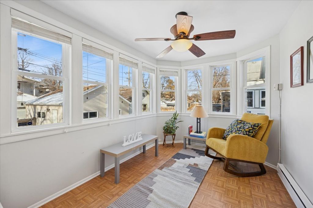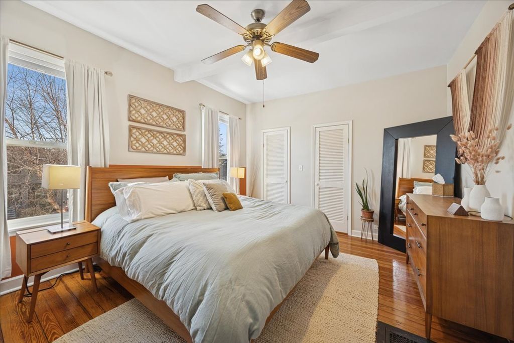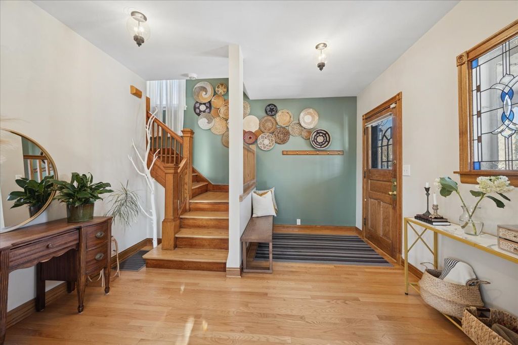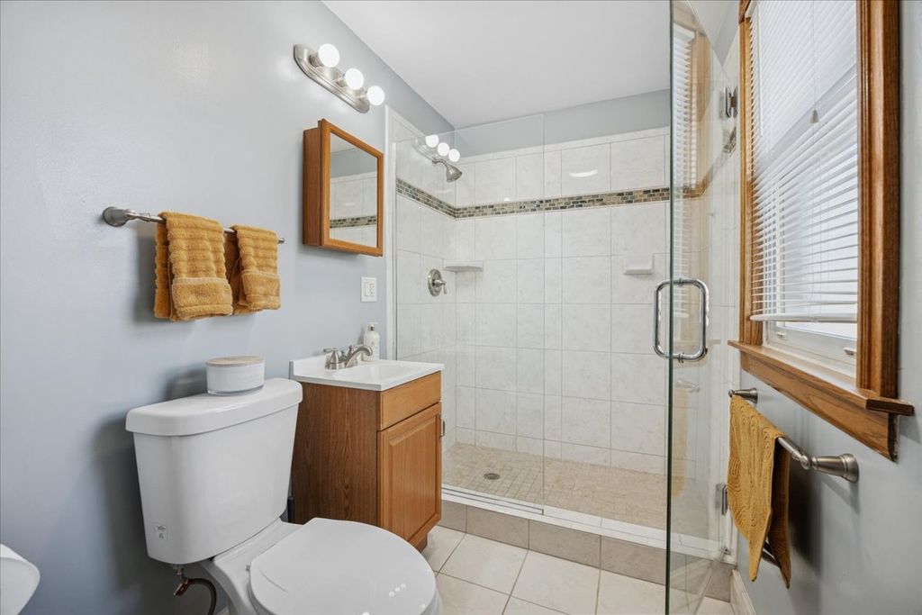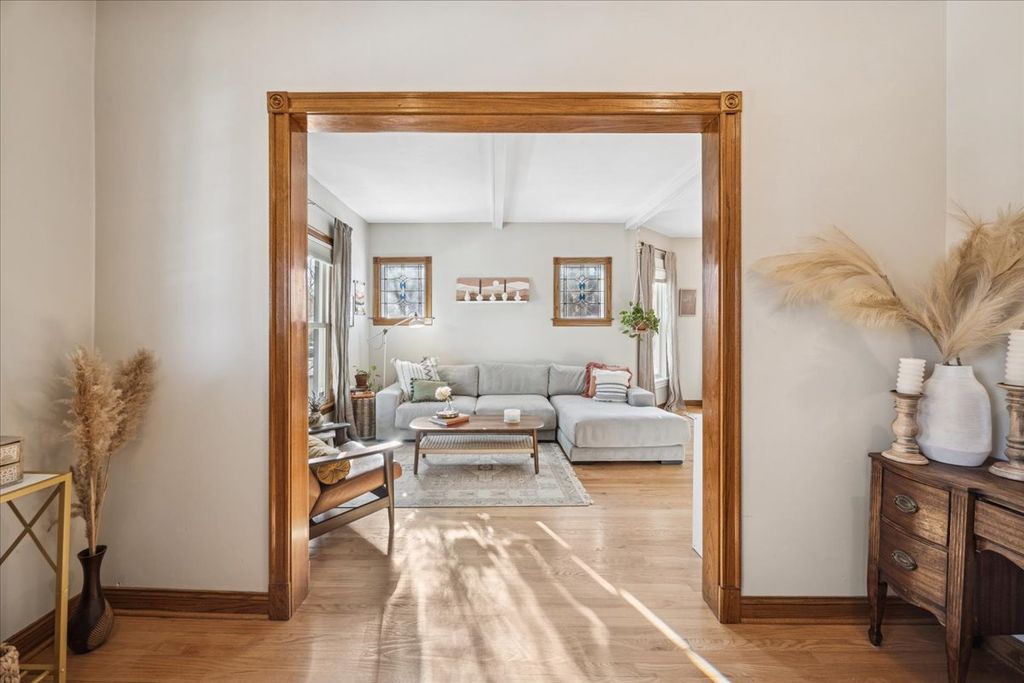 This sun-filled, well-maintained five bedroom, two bath residence is ideally situated in Oak Park's highly sought after Arts District. Exceptional curb appeal is highlighted by newer stucco, storybook front porch with swing, and an oversized 64' x 125' fully fenced corner lot. A welcoming foyer opens to the large living and formal dining rooms. Both featuring charming stained glass windows and beautiful oak hardwood floors - perfect for entertaining and hosting memorable holiday gatherings. The updated eat-in kitchen offers stainless steel appliances, abundant 36" cabinets, thick granite countertops and a classic stone backsplash, blending functionality with timeless style. The first floor includes a bedroom with an en-suite bath, ideal for guests or multi-generational living. The second level features a spacious primary bedroom with a walk-in closet, three additional generously sized bedrooms and a shared full bath with a double vanity and granite countertop. A thoughtfully designed addition provides a rear stairwell and a heated sunroom - an inviting space for year-round relaxation. The unfinished basement and attic offer exceptional potential for future expansion or customization. The backyard offers privacy and ample room for outdoor living. Parking is plentiful with a two-car garage plus three additional exterior parking spaces. Ideally located near Longfellow Elementary School, parks, restaurants, the Blue Line, Publican Bread, shopping, and more. This home offers the perfect balance of historic charm and modern convenience in a premier Oak Park location.