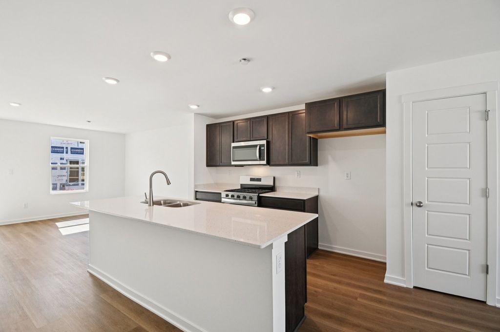 Welcome to 1433 Oakfield Lane in Pingree Grove, Illinois, a modern, new townhome in our scenic Cambridge Lakes North community. This townhome will be ready late winter! Homesite includes a fully sodded yard that is maintained throughout the year as well as snow removal in the winter. This Garfield townhome is a captivating open floor plan with over 1,700 square feet of living space which includes 3 bedrooms, 2.5 baths and a finished flex space. As soon as you step inside from the garage, you'll be greeted by a finished flex space, perfect for an office or playroom. Walking up the stairs, you will find this home's open concept main level living space centered around a large kitchen island. The expansive kitchen overlooks both the front dining and back great room areas, making it the ideal space to entertain. Additionally, your kitchen features designer cabinetry, quartz countertops, stainless-steel appliances, and pantry. Arriving at the top floor, you'll find our 3 bedrooms. Enjoy a spacious primary bedroom suite which includes a large walk-in closet lit up by its own private bathroom with dual sinks and a walk-in shower. The rest of the upper level features a laundry room, secondary bedrooms with a full second bath and linen closet. You'll find luxury vinyl plank flooring throughout the main level kitchen and dining, bathrooms, and laundry. Impressive innovative ERV furnace system, Rheia ductwork delivery system and tankless water heater round out the amazing features this home has to offer! All Chicago homes include our America's Smart Home Technology. Photos and model photos are of similar home. Actual home built may vary.