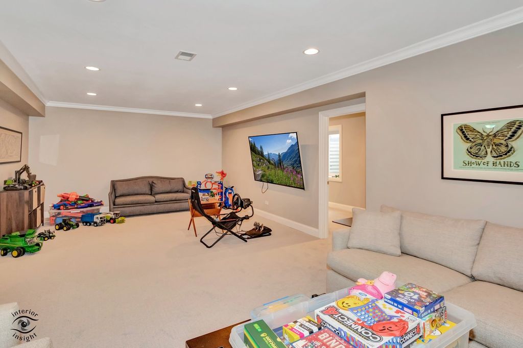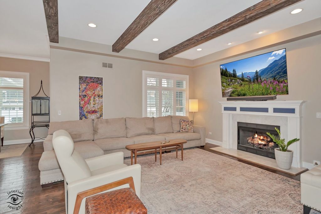 Steps from downtown La Grange, this beautifully framed traditional home offers 5 bedrooms and 5.5 bathrooms, located just a block from the elementary school and within walking distance to downtown La Grange, the cinema, the library, popular restaurants, and commuter train. The home features a bright open floor plan with high ceilings and wooden beams, hardwood floors throughout, and new carpeting in the finished basement. The first floor includes a formal living room, formal dining room, and in addition a reading room or study, offering flexible spaces for everyday living and entertaining. The open kitchen with a breakfast room includes a large wood island and flows seamlessly into the family room, with a cozy fireplace and views of the beautiful backyard. A mudroom located at the back entrance provides easy access from the backyard. The primary suite is located on the second floor and offers a luxury en-suite bathroom and a huge walk-in closet. Each bedroom has its own private bathroom, and the second-floor laundry room adds convenience. The fully finished basement is ideal for entertaining, featuring a theater room, exercise room or optional fifth bedroom, a large recreation room, walk-in wine closet, and additional storage spaces. A rare opportunity to own a spacious home in one of La Grange's most desirable and walkable locations.