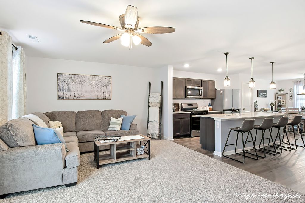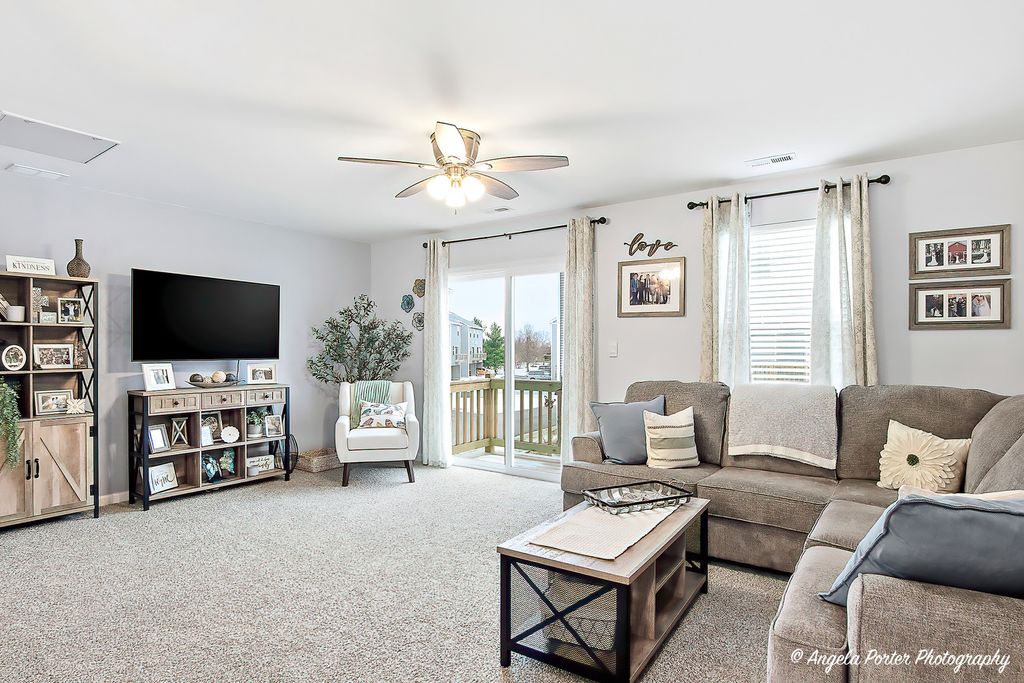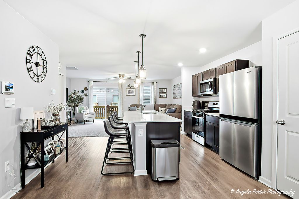 This 1,758-square-foot Garfield townhome at 6621 Sassafras Way in Wonder Lake offers the rare advantage of like-new construction combined with move-in convenience-refrigerator, washer, dryer, window blinds, and ceiling fans all included. Built in 2024, the home features 4 bedrooms, 2.1 bathrooms, and a thoughtfully designed layout across three levels. The attached two-car garage provides direct entry to the finished lower level, where the flexible fourth bedroom works well for guests, a home office, or recreation space. Upstairs, the main level presents an open-concept design connecting the kitchen, dining area, and living room. The kitchen includes smoke-stained designer cabinets, a large island with seating, white quartz countertops, stainless steel appliances, and a walk-in pantry. Sliding doors from the living room open to a private balcony-a comfortable spot for morning coffee or evening unwinding. The top level places the primary bedroom on its own side of the floor, creating a private retreat with an ensuite bathroom featuring a dual-sink quartz vanity, walk-in shower, and generous walk-in closet. Two additional bedrooms, a full bathroom with a single vanity, and a convenient second-floor laundry room with included washer and dryer complete this level. Luxury vinyl plank flooring runs throughout the kitchen, bathrooms, and laundry, while the home's energy-efficient ERV furnace system includes an added humidifier, and the tankless water heater provides endless hot water. The Stonewater community has completed its amenities, including an aquatic center, walking paths, ponds, and green spaces across 142 acres of natural beauty. The homesite includes year-round yard maintenance and winter snow removal. Smart home technology comes standard-video doorbell, smart thermostat, smart lock, and voice control-adding modern convenience to everyday living. This home offers the quality of new construction without the builder wait, plus the appliances and window treatments you'd otherwise purchase separately. Located in Wonder Lake with access to outdoor recreation and convenient highway connections. Dream today!