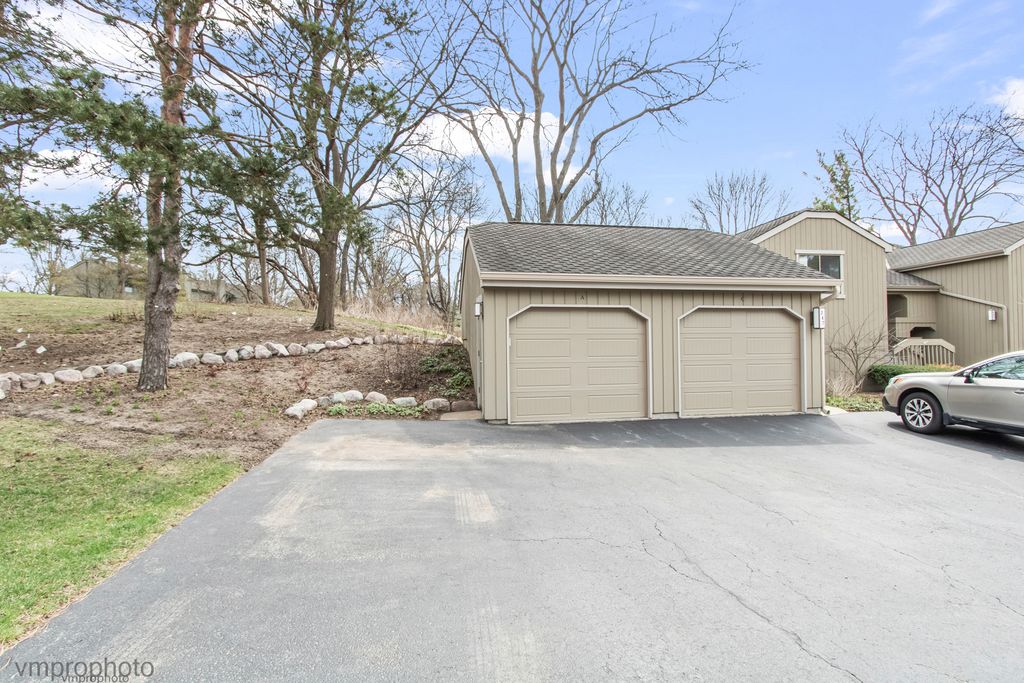 Treetop views and golf course peeks! This immaculate and updated upper level Braeburn model is in tip top condition. This home has a private entrance & garage with an extra parking space too. The bright upper level location allows for volume ceilings and sun-drenched rooms. A cozy fireplace is perfect for snuggling by to read or watch TV in the large Living Room and the sliding glass door accesses the spacious deck for quiet enjoyment of nature. The spacious Dining Room can accommodate your finest of dinner gatherings. An updated cheery Kitchen has beautiful raised panel cabinetry, stunning granite counters, farm sink and a charming nook for your breakfast table. Cooking is effortless in this beautiful Kitchen. The Primary Bedroom is extremely generous in size, has a large walk in closet and an updated bathroom with elevated vanity. The charming guest bedroom has great window lines, ample closet space and is neutral and bright in decor and the hall bathroom has a tiled walk-in shower. This beautiful home has been updated throughout and has a very neutral palate with nothing to do but move in. A wonderful location within LBS offers a combination of private wooded views & golf course just beyond. Enjoy all that Lake Barrington Shores has to offer, indoor/outdoor pools, hot tub, pickleball, lake, beach, fishing, kayaking, tennis, health club and a guarded, gated community. It's all at your fingertips! Many updates from 2019-2025 include: HVAC, H20 Heater, toilets, faucets, shower fixtures, water softener, dishwasher, disposal, washer, dryer, refrigerator, window screens & more.