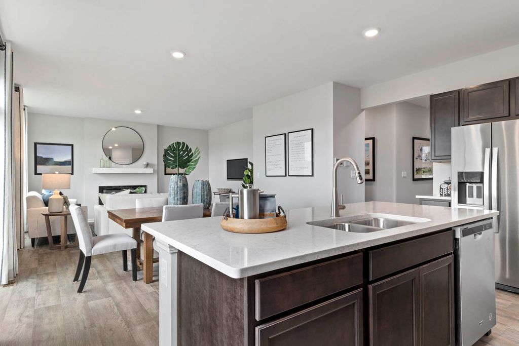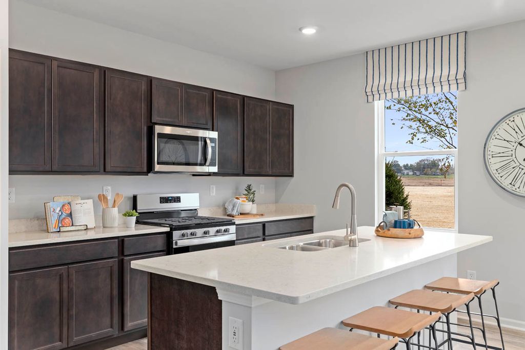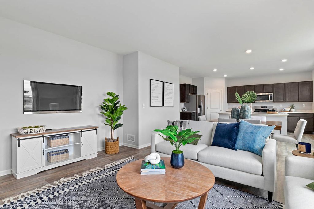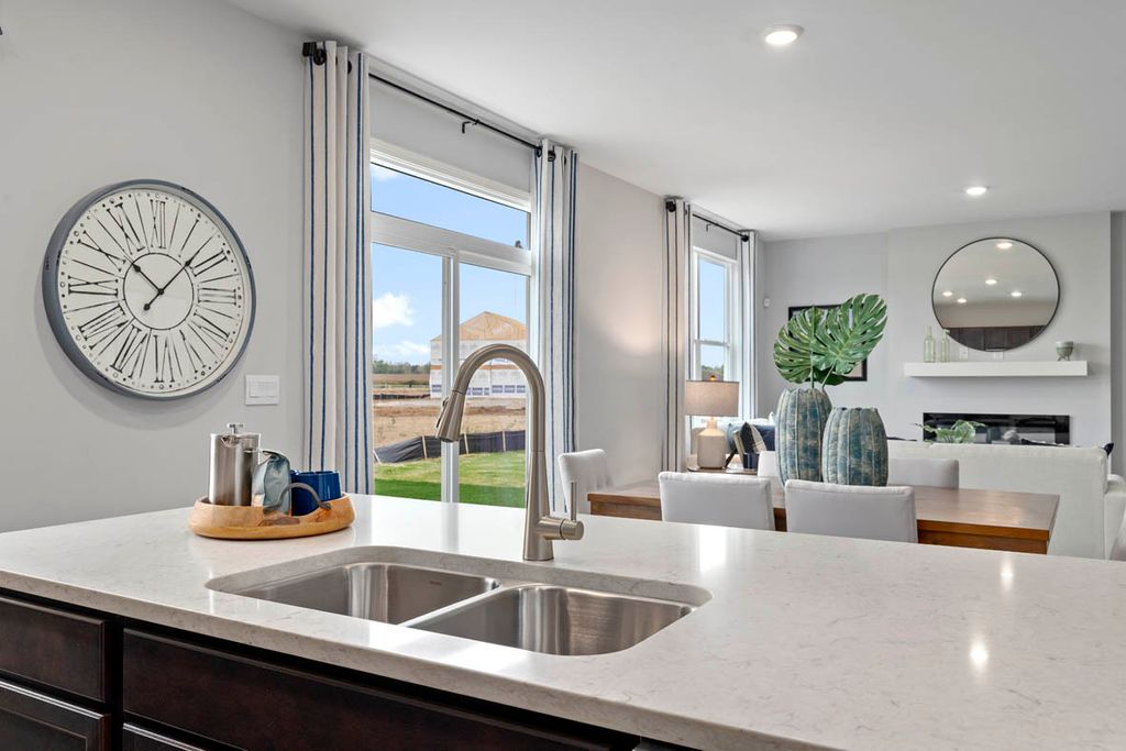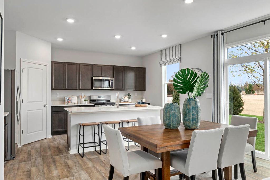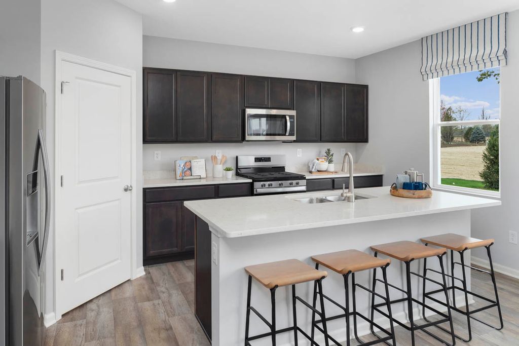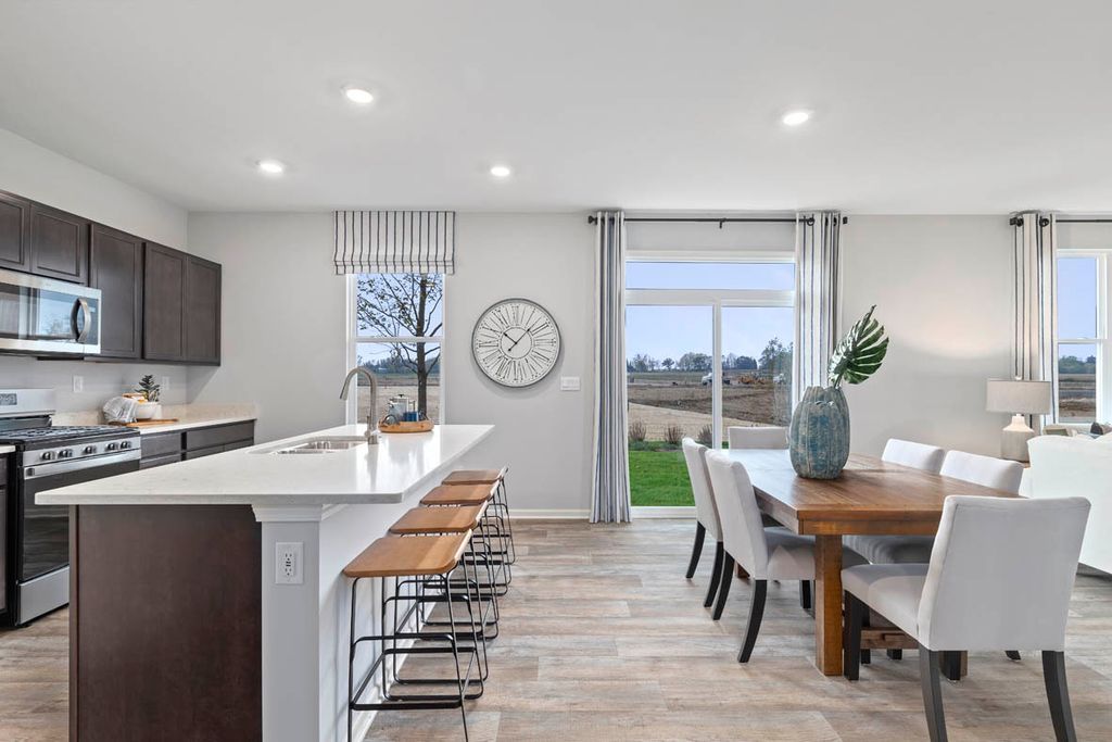 Imagine yourself at 978 Garnet Lane in Montgomery, Illinois, a picturesque new home in our Marquis Pointe community. This home is move-in ready NOW! This homesite includes a walkout basement and a fully sodded yard. The Holcombe plan offers 2,356 square foot 2 story, 4 bedrooms, 2.5 baths, 9-foot ceilings on first level. Entertaining will be easy in this open-concept kitchen and family room layout with a large island and an overhang for stools, 36-inch designer cabinetry with soft close doors and drawers. Additionally, the kitchen features a walk-in pantry, modern stainless-steel appliances, sparkling quartz countertops, and easy-to-maintain luxury vinyl plank flooring. Heading up the staircase you will find your private getaway to your large primary bedroom and en-suite bathroom with a raised height dual sink, quartz top vanity, and walk-in shower with spacious walk-in closet. Convenient second floor laundry room, 3 additional bedrooms with a full second bath and a linen closet complete the second level. Marquis Pointe is in Montgomery, IL, a charming historic town that evokes a family atmosphere with countless options for shopping, dining and entertainment. All Chicago homes include our America's Smart Home Technology, featuring a smart video doorbell, smart Honeywell thermostat, smart door lock, Deako smart light switched, Builder Warranty 1-2-10 and more. Photos are of similar home and model home. Actual home built may vary.