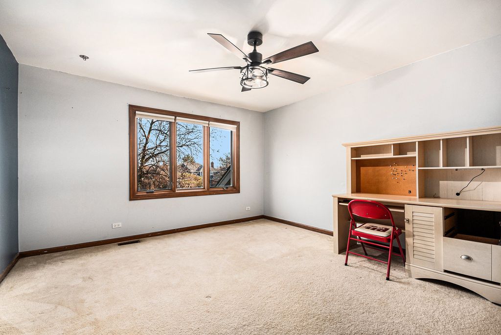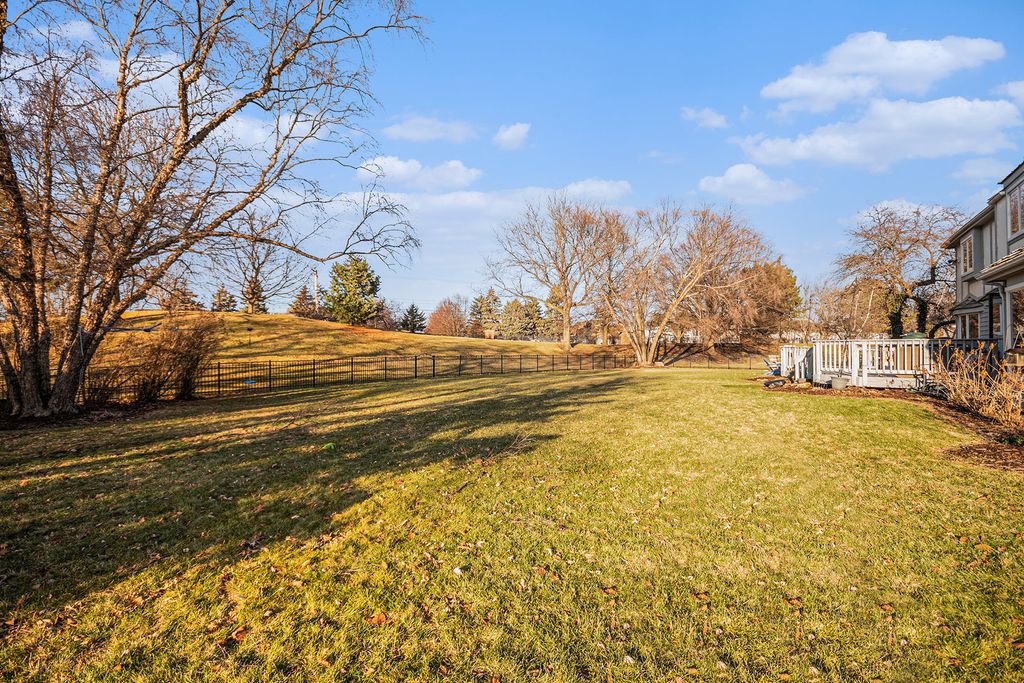 Beautifully maintained and thoughtfully updated home located in Naperville's highly sought-after White Eagle subdivision, set on a rare nearly 1/2-acre lot. This inviting residence offers a fantastic open floor plan ideal for everyday living and entertaining. The main level features a spacious dining room, a large living room, and a stunning kitchen with granite countertops, tumbled marble backsplash, and stainless-steel appliances (new refrigerator and double oven in 2022). The kitchen includes a generous eating area and opens seamlessly to the family room showcasing a vaulted ceiling, skylights, and dramatic two-story fireplace. Hardwood floors run throughout the main level (excluding the living room), complemented by bay windows throughout the first floor that fill the home with natural light. A main-level office (or potential 5th bedroom-no closet) sits adjacent to a full bath, offering excellent flexibility for guests or an in-law arrangement. Upstairs, the expansive primary suite impresses with a vaulted ceiling, large sitting area, ample closet space, and a luxurious spa-like bath featuring a custom walk-in shower, jacuzzi tub, double sinks, and an oversized vanity. Three additional bedrooms complete the second level, including a huge rear bedroom with an enormous walk-in closet, plus a shared full bath. The recently finished full basement provides additional living space with a custom poured and sealed concrete bar and a massive storage area. An oversized laundry/mudroom offers convenient access to the 3-car garage with service door. Enjoy outdoor living in the private humongous, fenced yard -perfect for relaxing or entertaining. This is one of the rare homes in White Eagle that does not back to any other homes and sits on .43 acres vs the standard .33 acres. Additional highlights include a sprinkler system, radon mitigation system, two new water heaters (2022), new A/C and furnace (2020) and new windows (2010). This exceptional home combines space, updates, and an unbeatable location-schedule your private showing today and experience all that White Eagle living has to offer!