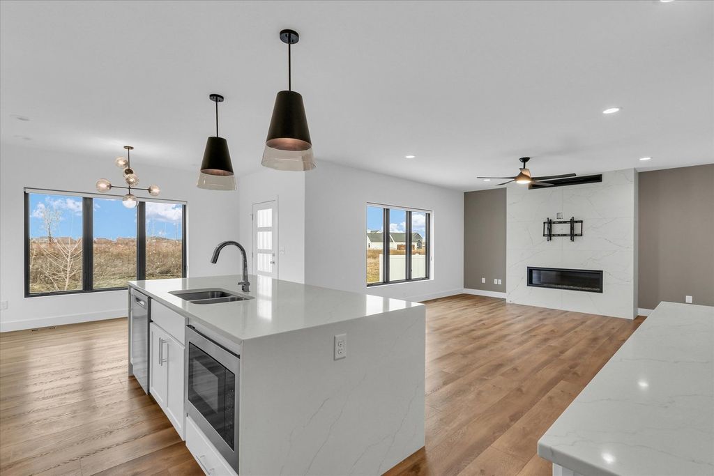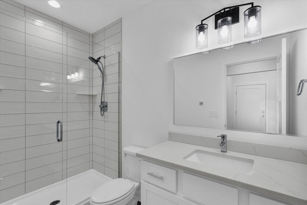 This nearly brand-new, two-story home offers the perfect blend of modern design, comfort, and functionality. Built just 1 year ago, it features over 3,000 square feet of beautifully finished living space with 4 bedrooms and 4 full bathrooms. The heart of the home is the stunning kitchen, showcasing an expansive waterfall island, durable luxury vinyl plank flooring, and an open-concept layout ideal for both everyday living and entertaining. The main level also includes a full bathroom, a versatile flex room perfect for a home office or playroom, and a generous walk-in pantry. Upstairs, you'll find three spacious bedrooms along with a conveniently located laundry room, while the finished basement offers a private fourth bedroom and additional living space. Located in the sought-after Liberty on the Lake neighborhood, this move-in-ready home combines modern style with thoughtful design in a welcoming community setting. A rare opportunity to own a like-new home that's ready to be enjoyed from day one.
