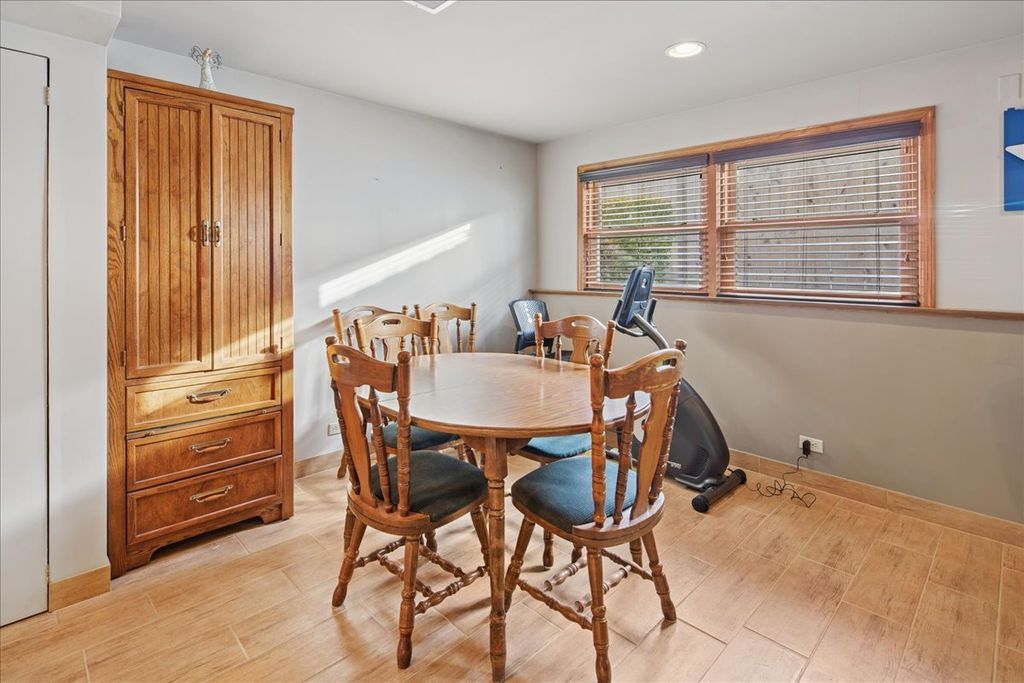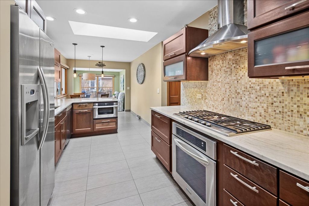 This beautifully updated 3-bedroom, 2 full bathroom split-level home, ideally located near the Mt. Prospect Golf Course truly has it all. Lovingly maintained and filled with abundant natural light, this home offers the perfect balance of style and comfort throughout. The thoughtfully renovated kitchen showcases timeless, high-end finishes, including gorgeous granite countertops and a classic backsplash-no expense spared. A sun-drenched skylight fills the space with natural light, making meal prep a pleasure. The kitchen also features an eat-in option and a charming sitting area, with sliding glass doors that open to a serene paver patio for seamless indoor-outdoor living. The second level hosts three generously sized bedrooms with ample closet space, along with a beautifully appointed full bathroom featuring striking tile work, a neutral color palette, a large linen closet, and a spacious double-sink vanity. The inviting lower level offers a large family room accented by a fireplace, a built-in dry bar, and an additional full bathroom-perfect for entertaining or unwinding. The basement is completed by a well-appointed laundry room. The backyard is truly an entertainer's dream, featuring a large green space and an expansive tumbled brick paver patio centered around a stunning built-in outdoor fireplace-ideal for gatherings or quiet relaxation. You will never brave the elements again as you pull into your two car garage complete with an epoxy floor. There is absolutely nothing to do but move in and start making memories in this exceptional home.