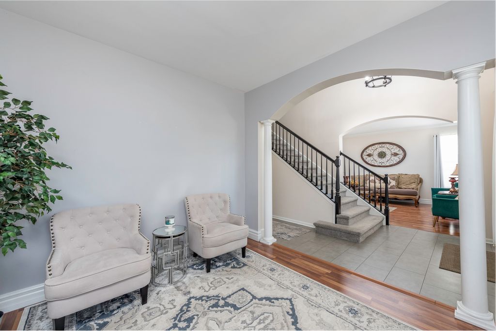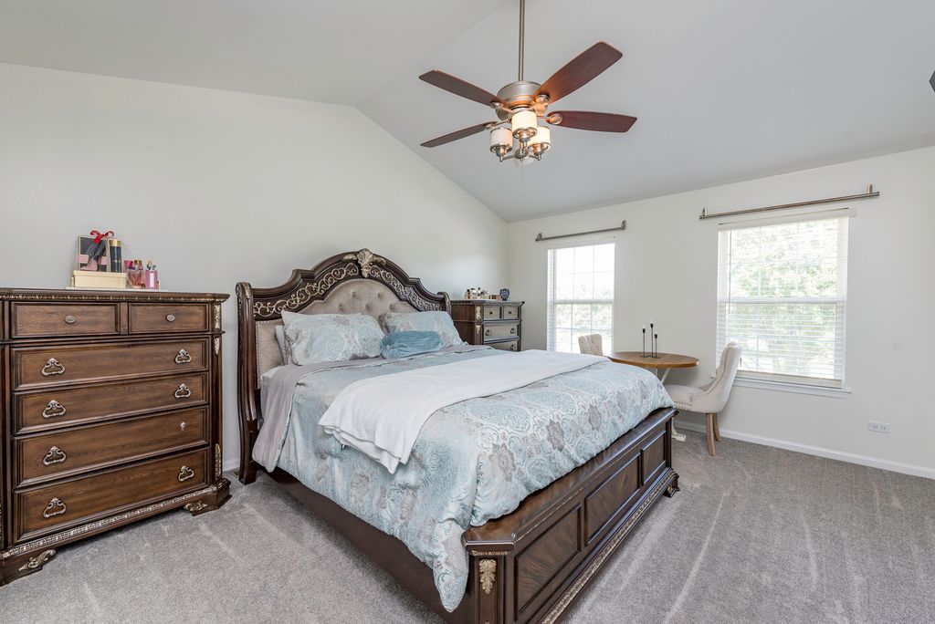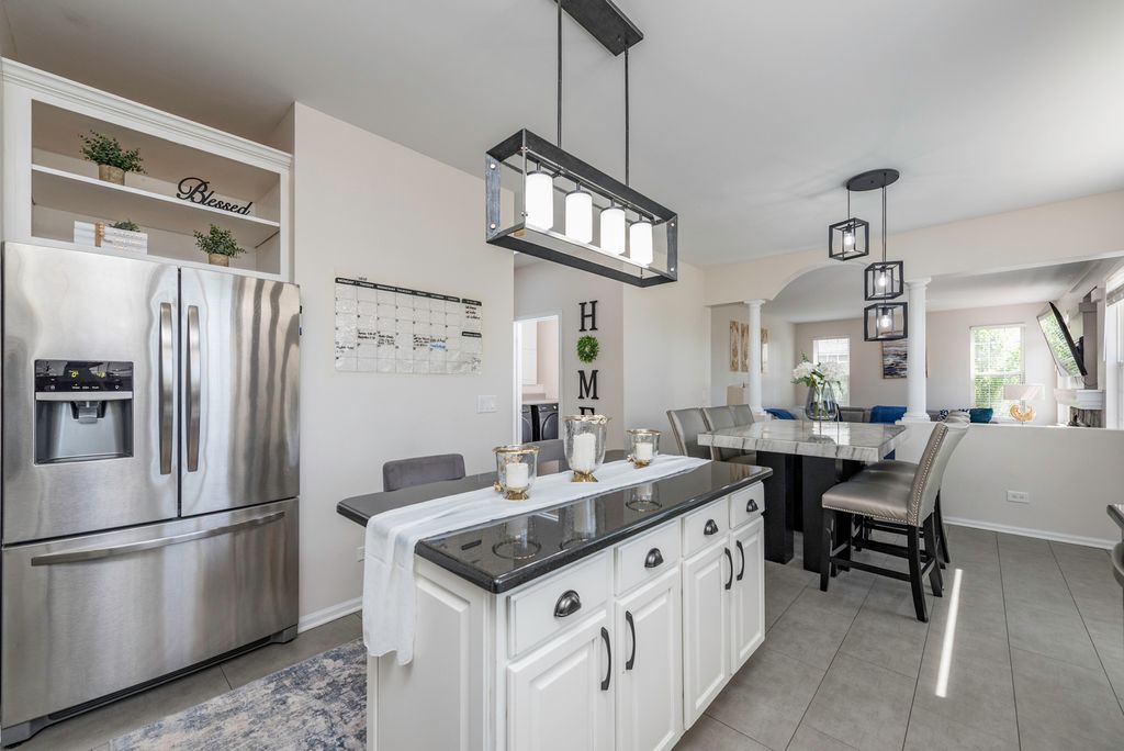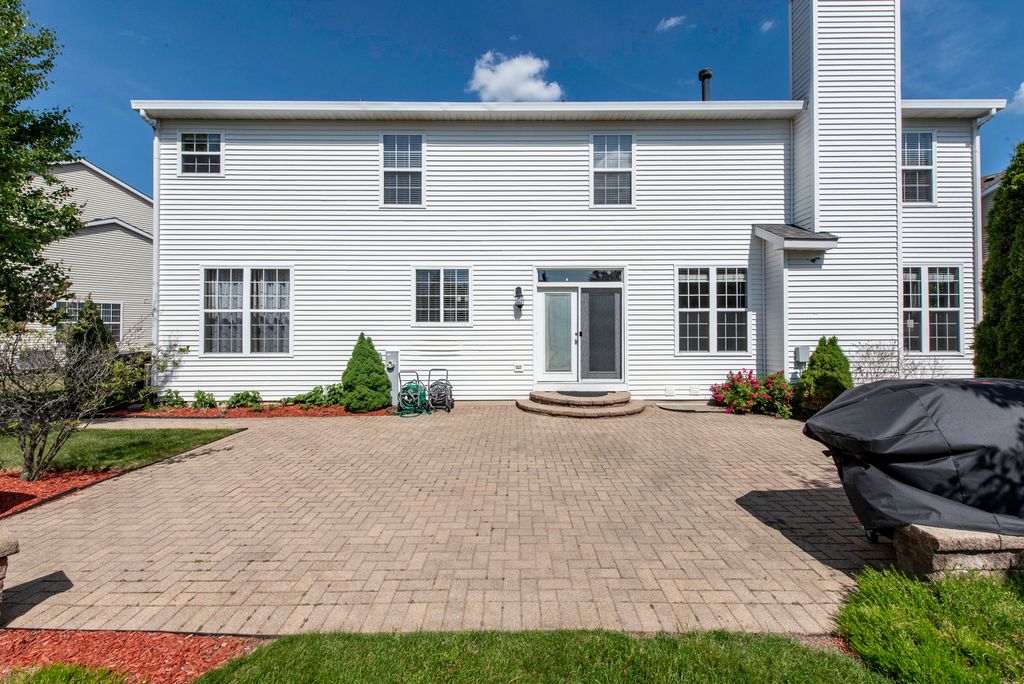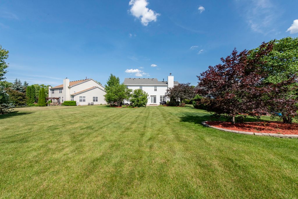 Welcome to this beautifully maintained 5-bedroom, 2.5-bath home perfectly positioned on one of the largest lots in the neighborhood. This property is ready for its next owner. A dramatic two-story entryway with arched details and soaring 9-foot ceilings creates an impressive first impression. The main level offers a flexible office or living space, formal dining, and a light-filled family room with a fireplace with hardwood floors, and an updated half bath. The kitchen features white 42-inch cabinets, black granite countertops, stainless steel appliances, recessed lighting, an island with seating, and modern pendant lighting. Upstairs, the primary suite includes vaulted ceilings, a spacious ensuite bath with double vanity, soaking tub, and separate shower. Three additional bedrooms offer excellent closet space, including two with walk-in closets, plus a loft that provides extra flexibility. Brand-new carpet and an updated bathroom complete the upper level. The finished basement offers over 1,000 square feet of additional living space, recessed lighting, low-maintenance flooring, and a fifth bedroom. Outside, enjoy a large brick paver patio with multiple seating areas, a wrap-around walkway, and a custom shed with power. The garage and shed feature epoxy-coated floors, and a new cement slab provides extra parking. Major updates include roof (2018), HVAC (2021), garage doors and opener (2019), and front door (2018). Conveniently located near shopping, dining, sports complexes, and the Chain O' Lakes. This move-in ready home is an excellent opportunity to settle in before winter. Schedule your showing today.