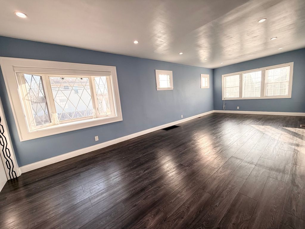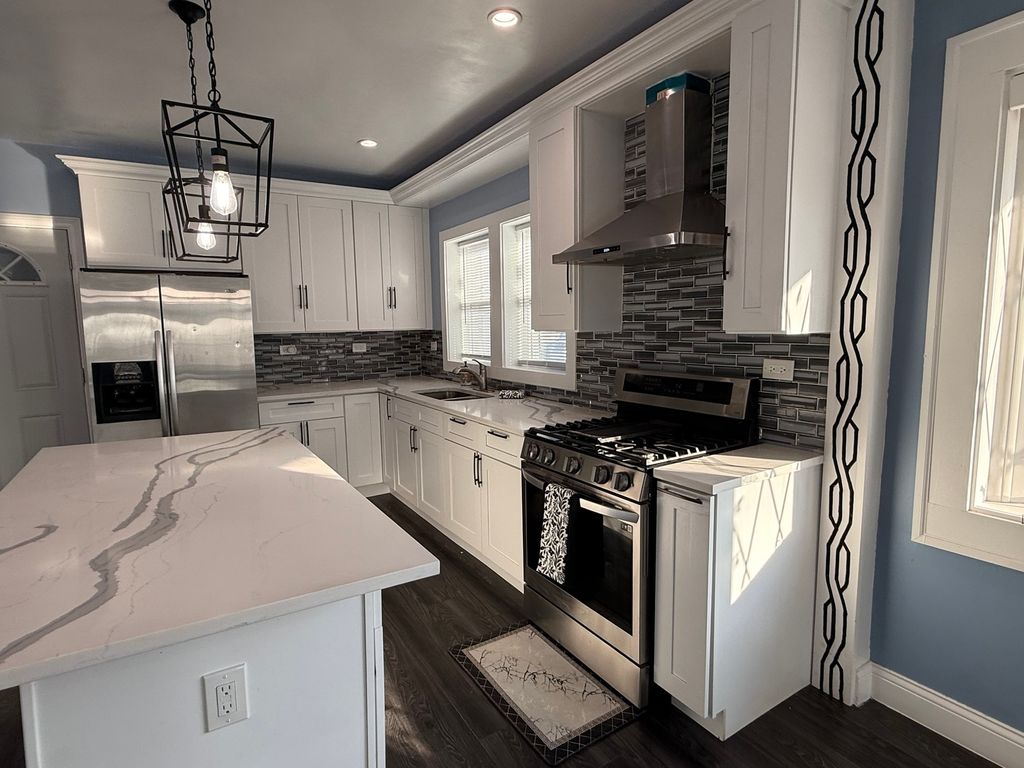 Move-in ready and fully renovated in 2022, this solid brick 3BD, 2BA Ranch with a full finished basement blends modern updates and timeless construction. Situated on a Corner Lot, the home features a charming Front Porch with swing, an Open-Concept layout, recessed lighting, and a beautifully updated Kitchen with 42" shaker cabinets and a spacious 3x6 breakfast bar island with electrical. The Living Room and Kitchen are open to the Dining Room where a bay window fills the space with loads of natural light. Renovations include updated Bathrooms on both levels, laminate flooring throughout, new furnace, A/C, hot water tank, roof, and mostly all new windows. An interior stairway leads to the large unfinished attic with expansion potential! Additional highlights include a 2-car Garage, plus a Carport serving double duty as a covered Patio for BBQs, and a concrete driveway for 2-4 cars. *Homeowner's exemption filed for 2025 taxes.