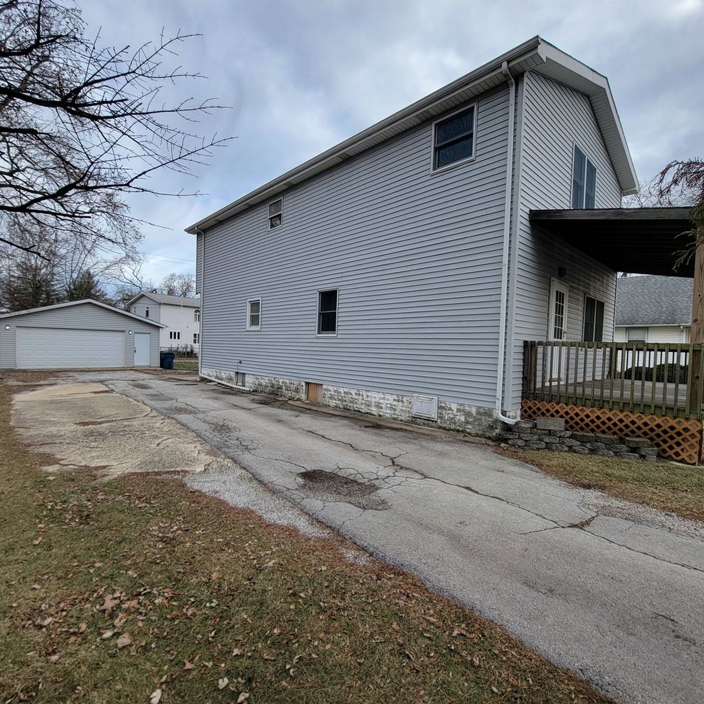 Welcome to this inviting two-story home offering space, comfort, and timeless charm. Featuring 4 bright, generously sized bedrooms with large closets and 3 full Baths, this home is thoughtfully designed for both everyday living and entertaining. Relax on the large covered front porch, perfect for morning coffee or evening conversations, then step inside to find a functional layout with plenty of natural light. The main living areas flow seamlessly to the outdoors, where patio doors open to a deck, ideal for grilling, or peaceful view of the yard. Additional highlights include a 2-car detached garage provides ample parking and storage, 200amp service, sub-panel in garage. Flexible bedroom options for a home office, and a layout that easily adapts to a variety of lifestyles. updates in the home include majority of windows replced, sub-panel upstairs, reverse osmosis water system, copper water lines, on demand water heater, and water softener. This home combines classic features with practical living spaces - ready for you to make it your own, while sitting on 3 lots.