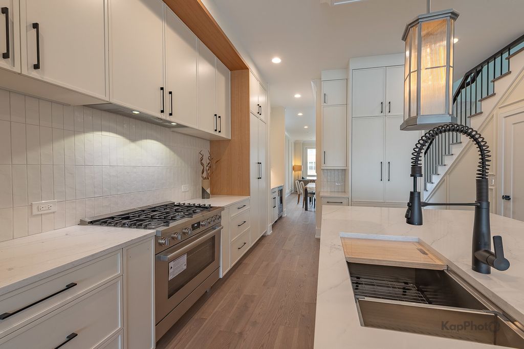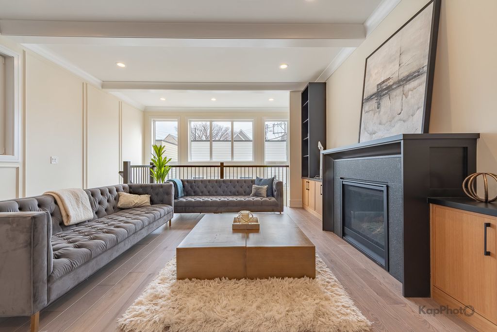 Wonderful opportunity to purchase a brand-new home by renowned developer GB Construction. This residence is filled with luxurious finishes, including custom millwork throughout, vaulted and coffered ceilings, heated floors, and a thoughtfully designed kitchen with solid wood cabinetry, quartz countertops, and panel-ready appliances. The deep basement offers impressive ceiling height and large windows that flood the lower level with natural light. Enjoy a very private backyard complete with a party door leading to your two-car garage.