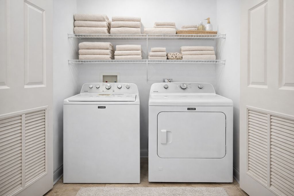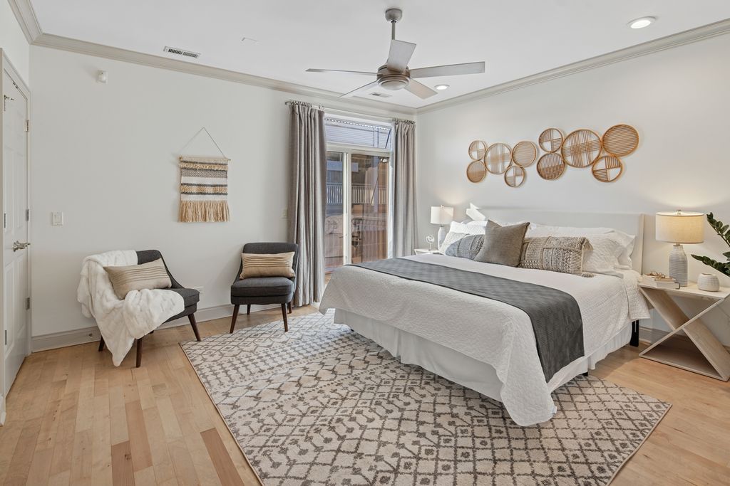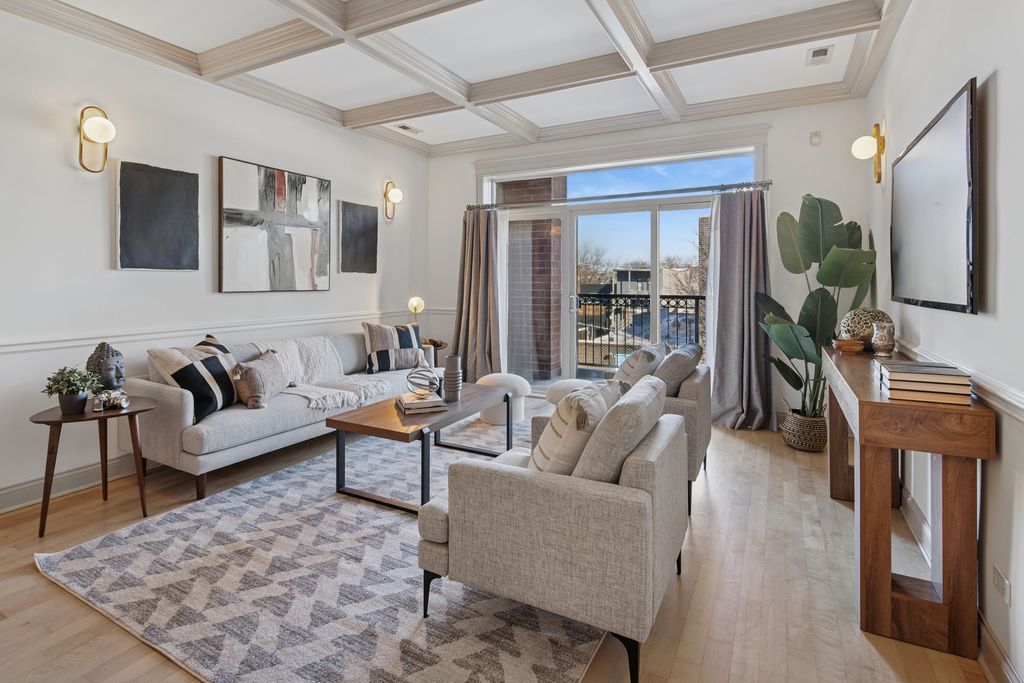 Exceptional 1,800-square-foot Bucktown condo in a solid 12 unit brick elevator building located directly on vibrant Milwaukee Avenue-just one block from the Blue Line with quick access to I-90/94. Incredibly soundproofed and beautifully finished, this home features light maple floors throughout, elegant and fresh paint selections, custom millwork and moldings in every room, and new upgraded light fixtures throughout add a polished, modern feel. The kitchen showcases stone countertops, a striking tile backsplash, under-cabinet lighting, and mostly brand new stainless steel appliances including a built-in wine fridge/beverage center. A tall cabinet pantry offers loads of storage as do the extra tall upper cabinets. The oversized primary suite is a true retreat with a private attached deck, spa-caliber bathroom featuring a steam shower, European body sprays and separate soaking tub, a fully built-out walk-in closet, plus a linen closet, and two additional closets with solid organization systems. The 2nd and 3rd bedrooms are equally generous in size and offer more large closets with custom organizers, room darkening Hunter Douglas shades and both feature Juliette-style slider doors. The condo boasts two additional storage closets with full organization systems and a dedicated laundry room with a brand new washer and dryer to complete the home. Additional highlights include a recently replaced HVAC, CAC and hot water tank ( 3 years new). Enjoy a common rooftop deck, elevator access ideal for families, and an included heated indoor garage parking space with room for additional storage behind it. Steps from shopping, coffee shops, restaurants, and entertainment, this home delivers the best of Bucktown living with unbeatable transit access and everyday convenience.