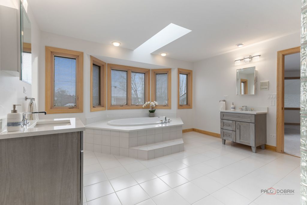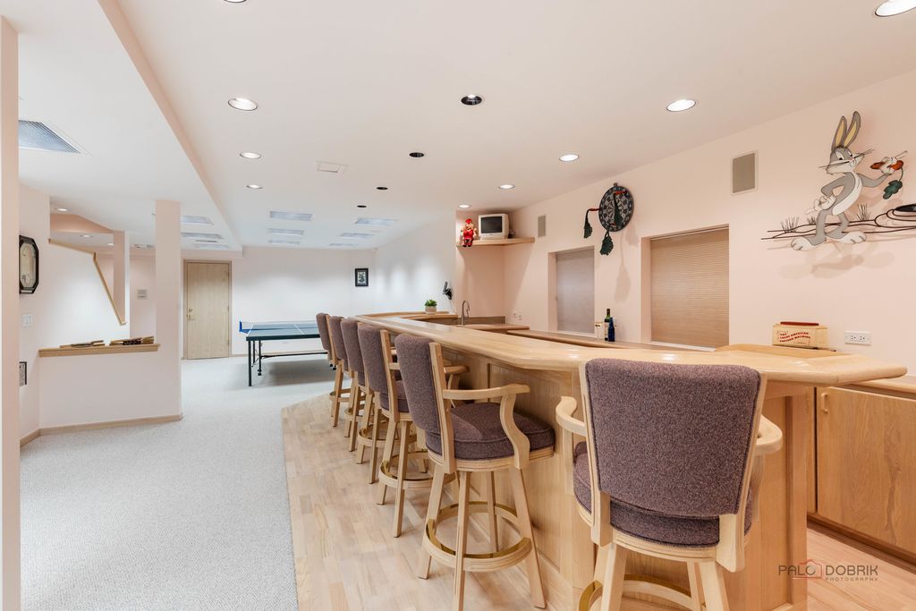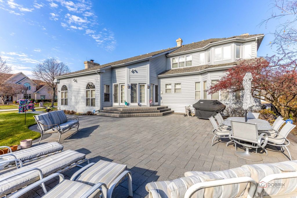 Nestled within the highly sought-after and award-winning Stevenson High School district, this beautifully appointed 5-bedroom, 3.1-bath home offers an exceptional blend of comfort, style, and functionality. From the moment you step inside, the impressive two-story foyer welcomes you with abundant natural light and a sense of spaciousness that flows throughout the home. To the left of the foyer, a spacious living room invites you to unwind beside a cozy fireplace, creating a warm and inviting atmosphere. This room seamlessly transitions into the expansive formal dining room, an ideal setting for hosting dinner parties, holiday celebrations, or intimate gatherings. The heart of the home lies in the well-equipped kitchen, designed to meet the needs of everyday living and culinary creativity. It features an island with a breakfast bar for casual dining, brand-new stainless-steel appliances, brand-new quartz countertops, and an abundance of cabinetry offering ample storage. The bright eating area, surrounded by windows, fills the space with warm natural light and grants direct access to the patio, making outdoor dining and entertaining simple and convenient. Adjacent to the kitchen, the cozy yet spacious family room serves as a comfortable retreat for relaxing evenings. Highlighted by a beautiful fireplace, this room is perfect for gathering with loved ones or enjoying a quiet night at home. The main level is completed by a private office ideal for remote work, study, or creative pursuits. A well-appointed laundry room with direct garage access adds everyday convenience, while a stylish half bath rounds out the main floor. Upstairs, the serene primary suite offers a luxurious escape, featuring a generous sitting area perfect for lounging or unwinding with a book. The walk-in closet provides ample space for wardrobe organization, and the ensuite bathroom enhances the retreat with two separate vanities, a soothing soaking tub, a real bidet, and a separate shower for maximum comfort and convenience. Three additional spacious bedrooms, each with its own walk-in closet, provide versatility for family, guests, or hobbies. A full hallway bath serves these bedrooms with ease and functionality. The fully finished lower level expands your living space even further, offering endless possibilities for entertainment and recreation. Highlights include a second full kitchen, a dedicated game area, a large recreation room complete with a wet bar, a full bathroom, and an additional fifth bedroom or an office, exercise area, or hobby space. The brick paver patio includes a long walkway connecting to the garage side door and driveway! Additional standout features include R38 insulation throughout the home and attic for enhanced energy efficiency, as well as UL-listed lightning protection for added peace of mind. Ideally located just minutes from parks, shopping, and restaurants, this home combines comfort, convenience, and exceptional value.