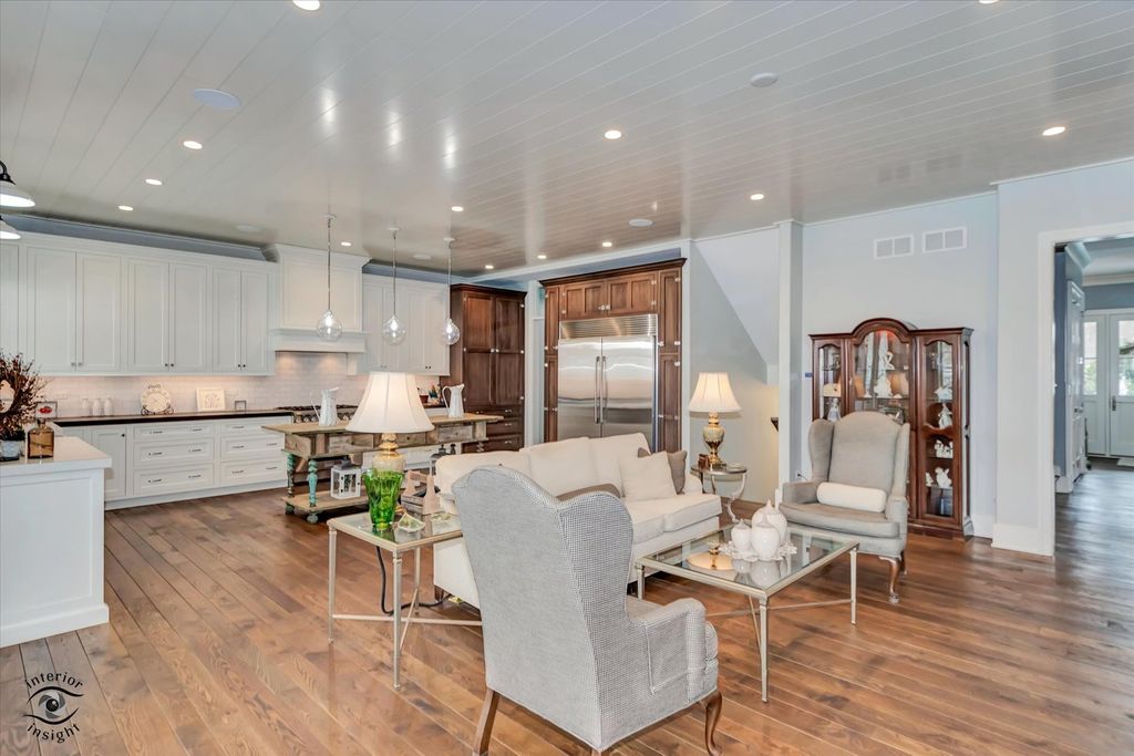 Custom-built luxury townhome located in the heart of Historic Downtown Frankfort. Built in 2019, this beautiful residence blends timeless 1890s charm with modern luxury and offers 3 bedrooms, 2.5 baths, and approximately 2,850 square feet of thoughtfully designed living space with exceptional craftsmanship throughout. The open-concept main level features dramatic 10-foot ceilings, shiplap ceilings in the family room, oak flooring, crown molding, wainscoting, recessed and designer lighting, dimmer switches throughout, and the spacious family room has a gas fireplace and custom mantel. Large Pella windows provide abundant natural light, while oak floors are professionally fumed for a rich finish. The chef's kitchen is appointed with top-of-the-line appliances including a Thermador 6-burner range and dishwasher, Electrolux double refrigerator/freezer, African hardwood countertops, shaker-style cabinetry with pull-out drawers, under-cabinet lighting, dual pantries, and a reverse osmosis system serving both the sink and ice maker. The primary suite offers a vaulted ceiling, sitting area, his-and-hers custom walk-in closets, and a spa-inspired bath with marble tile, pebble stone shower floor, walk-in shower with rain head, dual quartz vanities, custom mirrors, linen storage, and a new high-output exhaust fan on timer. Two additional large bedrooms with 8-foot doors, a beautifully finished hall bath, and a designer powder room with custom vanity, shiplap walls, and oak flooring complete the living spaces. Second-floor laundry includes granite counters, laundry sink, upper and lower cabinetry, and GE front-load washer with gas dryer. Additional features include a fully insulated basement with 10-foot ceilings, radiant heated floors in both the basement and garage, rough-in plumbing for a future full bath, upgraded oak basement stairs, painted and sealed basement floors and walls, storage closet, backup sump pump, whole-house generator (serviced annually), Bradford White water heater, Hague water softener, high-efficiency Amana furnace and central air (serviced annually), April Aire humidifier, Honeywell electronic air cleaner, security system connected to police and fire, Ring doorbell and rear patio camera, carbon monoxide and fire detectors, and freshly painted interiors (2024). Exterior highlights include James Hardie fiber cement siding, Pella windows and doors, covered patio with retractable screen, heated oversized 2-car garage with epoxy floors, extra lighting, floor outlets, and exterior keypad, new private road (2024), rain chain detail, and professionally landscaped grounds offering exceptional privacy with arborvitaes, hostas, stone walkways, gravel maintenance-free areas, and privacy fencing. HOA is $150/month and includes lawn care and snow removal for streets, driveways, and sidewalks. Unbeatable walk-to-downtown Frankfort location near Breidert Green, Old Plank Road Trail, Prairie Park, boutique shopping, dining, farmers markets, concerts, festivals, holiday events, and award-winning schools in District 157C and Lincoln-Way High School.