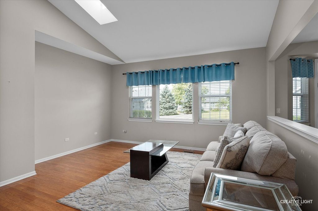 Welcome to this 2-bedroom, 2-bath ranch townhome in the sought-after 55+ community Carillon Lakes. Beautiful hardwood floors create a luxurious feel throughout the dining room, living room, and bedrooms. White trim and classic white 6-panel doors with brushed nickel lever handles add a fresh, modern touch throughout the home. The spacious living room features a vaulted ceiling, two skylights that fill the space with natural light, and views of open space. The open floor plan leads seamlessly into the kitchen with tile floors, stainless steel stove, dishwasher, refrigerator, microwave, an under-sink reverse osmosis system, and a cozy eating area with bay window. Step outside to enjoy the private patio with a privacy fence and peaceful views. The primary suite offers hardwood floors, a ceiling fan, walk-in closet, and a private bath with walk-in shower and grab bars. The second bedroom also features hardwood floors and a large bay window. This guarded, gated community offers resort-style living with a clubhouse, indoor and outdoor pools, fitness room, Pickle Ball, Bocce Ball, 3-hole golf course with putting green, ponds, fishing, and an auxiliary pool for visiting guests under 18. Major updates include: furnace & A/C (2019), water heater (2020), washer (2021), garage door opener (2022), reverse osmosis system (2022), roof (2024), and gutters (2024) garbage disposal (2025). Move-in ready and low maintenance, this home combines comfort, convenience, and community.