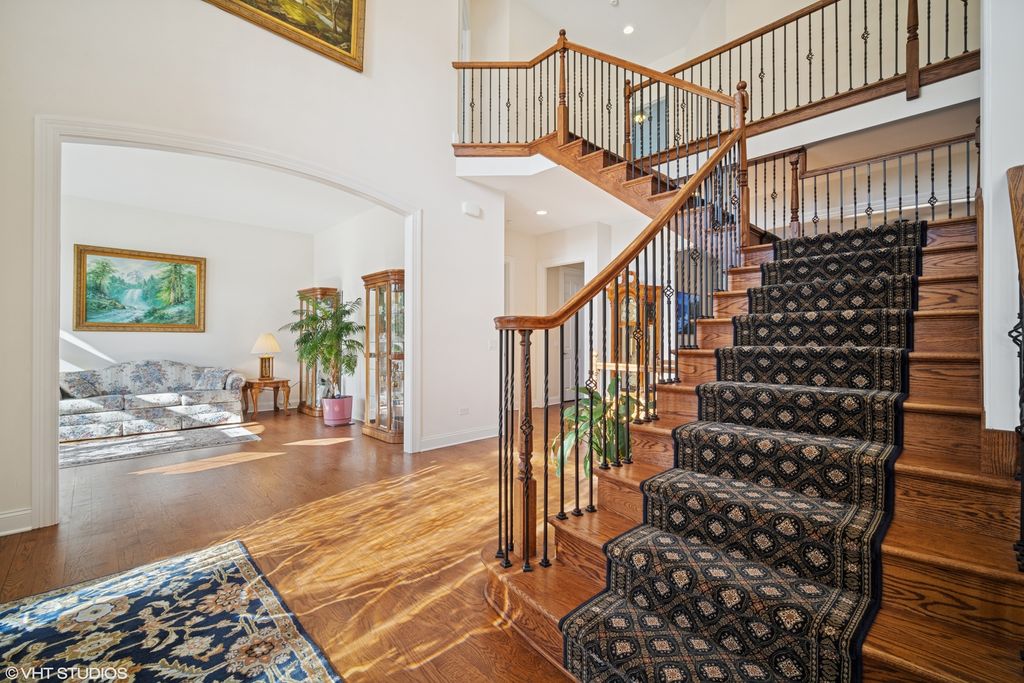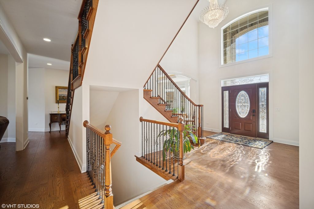 Experience the pinnacle of luxury in this stunning all-brick and stone custom home, offering over 8,000 sq. ft. of refined living space. Nestled in a peaceful cul-de-sac, this extraordinary residence boasts breathtaking wooded and water views, providing a private retreat with a backyard spacious enough to accommodate a swimming pool. Designed with sophistication and functionality in mind, the home features soaring 10-foot ceilings, intricate trim and molding, and an open-concept layout bathed in natural light. The gourmet kitchen is a chef's dream, equipped with a 6-burner stove, double ovens, and built-in refrigerator/freezer units, making it perfect for both entertaining and daily living. With six generously sized bedrooms-each with an en-suite bathroom-this home offers exceptional versatility, including a main-level mother-in-law suite and an expansive primary suite with vaulted ceilings, a private balcony, a cozy fireplace, and a spa-like bath with a soaking tub, custom walk-in shower, and a spacious walk-in closet. The primary suite also includes an attached nursery, office, or sitting room for added flexibility. Additional highlights include an oversized bonus room with stunning windows, a grand great room with a fireplace, and a fully equipped basement with a surround sound system-ideal for a home theater setup. Outdoor living is just as impressive, with two large decks overlooking the serene backyard, plus a private master balcony to enjoy your morning coffee. Practical features such as a smart home security system, laundry chute, whole-home generator, and a 4+ car attached garage with direct basement access further enhance convenience. Situated near highways, parks, and within the highly rated District 103 (Laura Sprague | Daniel Wright) and Stevenson High School #125, this exquisite home offers a perfect blend of elegance, comfort, and modern convenience. Don't miss the chance to call this your home!