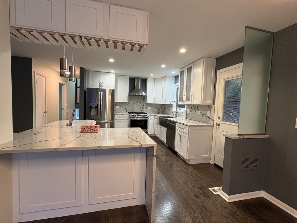 You're invited to tour this beautifully maintained and thoughtfully updated bi-level brick home-your next oasis in Park Ridge! Step inside and you'll be greeted by a bright open-concept layout featuring gleaming hardwood floors throughout the main level and floor-to-ceiling windows that fill the living and dining areas with natural light. The impressive kitchen boasts white cabinetry, quartz countertops, and an elevated gourmet feel. This home offers 3 spacious bedrooms and 2 full baths-with one bedroom and full bath conveniently located on the main level, and two additional bedrooms plus a full bath upstairs. Both bathrooms feature modern finishes, including a defrost mirror with exceptional lighting. The renovated family room includes a new window, fresh brick tile fireplace surround, and six recessed lights, creating the perfect setting for cozy movie nights. Additional updates throughout the home include new hallway fixtures, newer ceiling fans, and energy-efficient smart LED sconces outside the garage. The exterior has been equally enhanced with a widened driveway (extra 2.5 feet), new concrete in the driveway and garage, an insulated garage door and windows, and fully finished garage walls with outlets on every wall and super-bright LED shop light panels. The utility room features newer vinyl flooring, and the crawl space has been upgraded with closed-cell spray foam insulation, moisture barrier, and concrete flooring. For the eco-minded, this property is equipped with solar panels and a Tesla Power-wall battery backup system, plus a Tesla charging dock-ready for your electric vehicle of choice. Location highlights: This home is within the highly desirable Maine South High School district, walking distance to the Dee Road Metra station, and just minutes from both downtown Park Ridge and downtown Des Plaines, offering easy access to shopping, dining, and commuter routes. This home truly blends modern updates, energy efficiency, and an unbeatable location-don't miss the chance to make it yours!