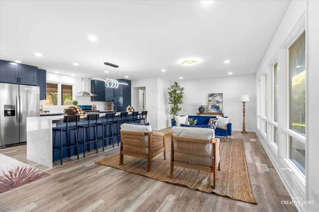 ***HUGE PRICE IMPROVEMENT!! THIS IS YOUR CHANCE TO OWN THIS GORGEOUS LIKE-NEW HOME!!*** Wow! This home will take your breath away. Fully rehabbed from top to bottom, this 5-bedroom, 2.5-bath home features a 3-car garage, over 2,200 square feet of living space, and nearly an acre of outdoor area - where luxury and country living blend perfectly. Step inside to a designer kitchen with quartz countertops, a waterfall island, custom-made cabinets, modern lighting, and brand-new stainless steel appliances. The 2.5 bathrooms were tastefully remodeled with high-end porcelain tile, elegant vanities, and LED mirrors - perfect for every selfie. Luxury vinyl plank flooring runs throughout the upper, main, and lower levels, adding to the home's seamless modern appeal. The upper level offers 3 bedrooms and 1 bath, while the lower level features 2 additional bedrooms, another full bath, and a bonus room ideal for an office, gym, or flex space. The spacious laundry room includes a brand-new Samsung washer and dryer for your convenience. The huge sub-basement provides endless possibilities - extra storage, a playroom, a man cave, or whatever fits your lifestyle. This home offers peace of mind with newer energy-efficient windows, a brand-new roof on both the main house and detached garage, plus new plumbing, new electrical, a new water softener, a new A/C unit - new everything! Outside, enjoy beautiful landscaping and ample outdoor space perfect for entertaining, gardening, or relaxing. This is truly the home you've been waiting for - move-in ready, luxurious, and absolutely stunning!