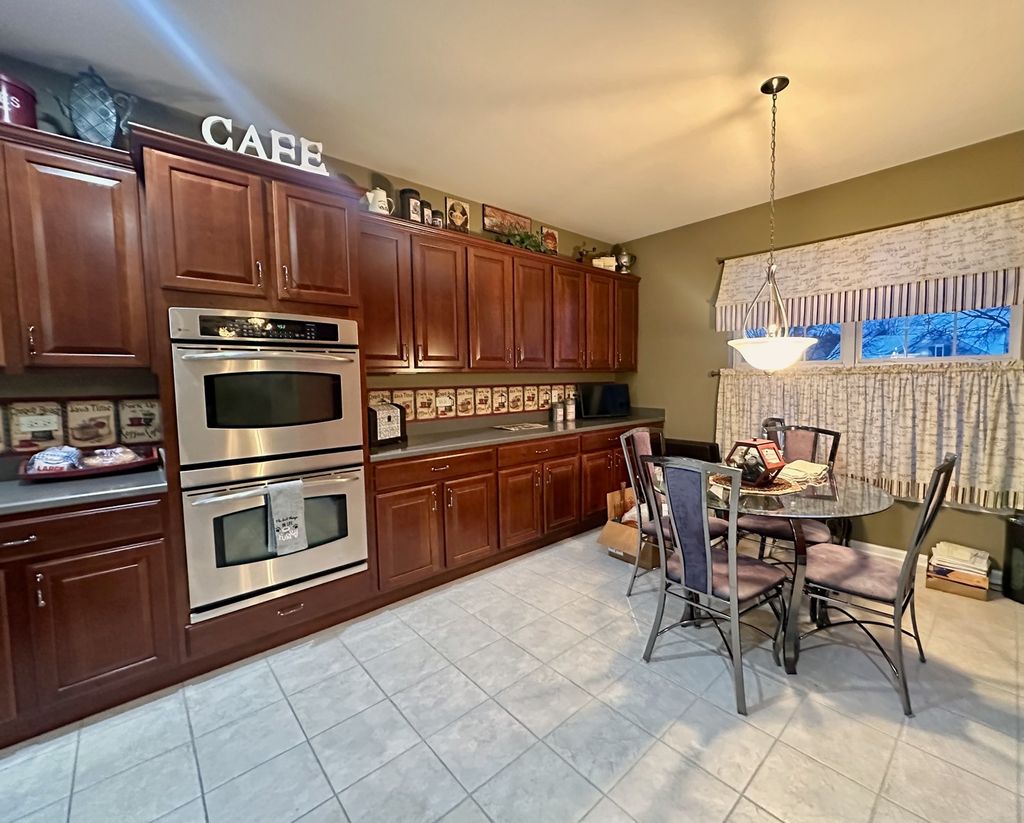 Exceptionally upgraded Grant model in sought-after Del Webb Sun City Huntley, meticulously maintained by the original owner. This pristine residence offers privacy, comfort, and timeless elegance. A welcoming foyer opens to a versatile den/library and a bright, open floor plan featuring 2 bedrooms and 2 baths. The gourmet kitchen boasts an abundance of 42" cherry cabinetry, Corian countertops, stainless steel appliances, cooktop and double wall oven, planning desk, and a large island, flowing seamlessly into the spacious living room with fireplace and surround sound system. The formal dining room has a bay window that is ideal for entertaining, while the luxurious primary suite also features a tray ceiling, bay window, whirlpool bath, dual vanities, and his-and-hers walk-in closets. The second bedroom has new carpeting and walk-in closet. The full basement offers expansive storage and future living space potential with a bath rough-in. Additional highlights include a laundry room with washtub, 4-foot extended insulated garage, a spacious patio perfect for outdoor entertaining, lawn sprinkler system, and recent updates including roof (2017), dishwasher and water heater (2021), and dryer (2024). Asphalt driveway is sealed every two years. Enjoy resort-style living in this award-winning 55+ community with golf, pools, fitness center, clubhouse, scenic trails, and an array of social amenities. Shopping and restaurants are nearby and access to the interstate.