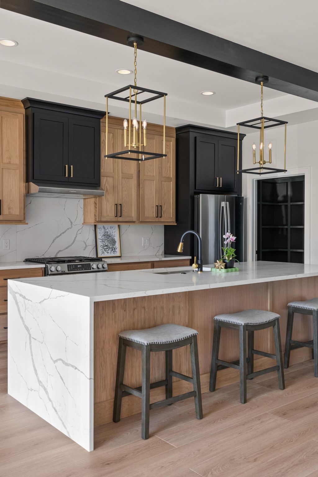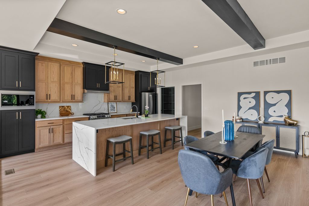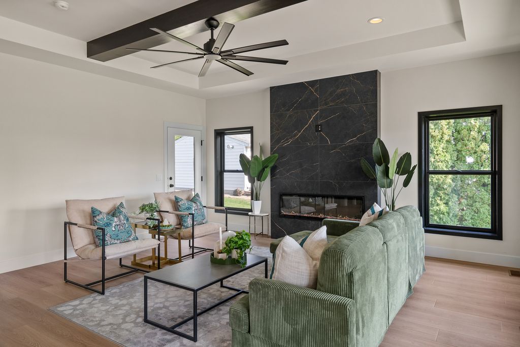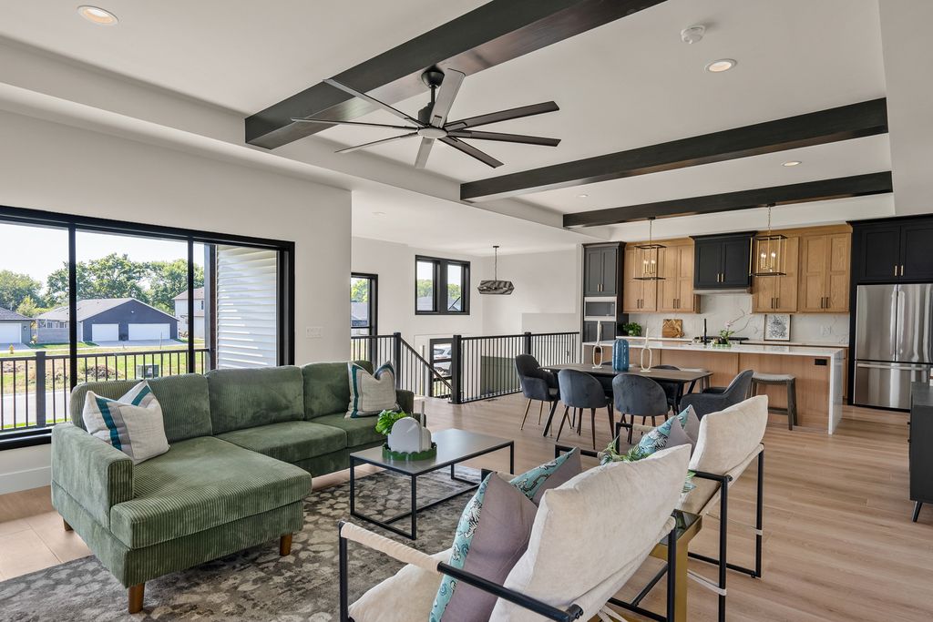 Don't be fooled by this front elevation- this Prairie style home delivers a spacious, open feel that far exceeds first impressions. A Parade of homes category winner, this home has 2,863 square feet of finished space featuring three bedrooms, 2.5 baths, expansive windows that fill the home with natural light, and a fully finished lower level. The step-less rear entry 3 car garage adds convenience and accessibility.