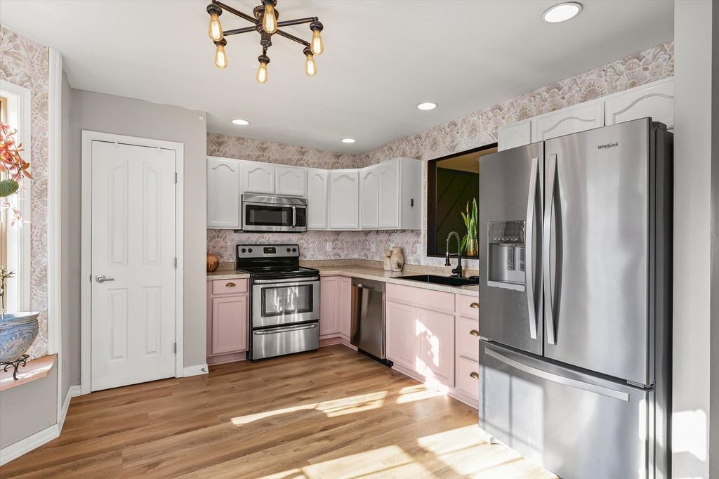 This well-maintained 3-bedroom, 2-bath townhome offers comfort, functionality, and character at an attractive price point of $220,000, with a transferable VA loan for qualified buyers. Inside, you'll find thoughtful upgrades throughout, including a new roof and refrigerator installed in 2020, granite countertops in all bathrooms, and updated flooring across the main level and portions of the upper floor. All appliances are included, and each room features unique paint and wallpaper accents that add personality and charm. The layout includes two primary bedrooms-one on the second floor and another in the finished basement, complete with a full bath-providing flexible living options. Additional features include storm doors at both entrances and a 1-car garage with ample storage. Enter outside to a fully fenced backyard with established landscaping, featuring mature hostas in the front and peonies, wisteria, and hardy hibiscus in the backyard. Two garden beds offer the perfect space to grow fruits and vegetables, and the trampoline will remain with the property. Pet lovers will appreciate the cat door and custom cat climbing wall in the laundry room. Whether you're looking for a personal residence or a potential rental opportunity, this home's upgrades, versatility, and inviting details make it one you won't want to miss.